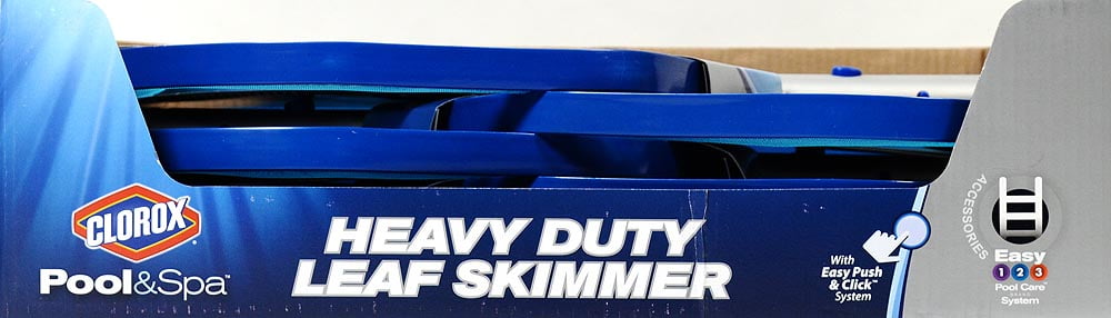 Clorox Pool&Spa Heavy Duty Leaf Skimmer with Easy Push & Click System has a solid aluminum frame so it lasts longer and is more sturdy. The puncture-proof net means holes created by leaves or other debris can easily be rubbed away to restore the net. The heavy duty aspect of this pool skimmer net is what separates it from the rest. Some skimmers are built to be somewhat flimsy and light. While this makes these pool skimmers easier to manage, it also makes them more likely to break. Use a heavy duty skimmer net such as this one to ensure it lasts a long time. The Push & Click system is also convenient, making assembly and disassembly a snap. Pair your Clorox Pool&Spa Heavy Duty Leaf Skimmer with our cleaning chemicals, and your pool will be swim-ready all season long. If you have issues keeping it balanced, use the Clorox Pool app for personalized advice on which products to use and how much to apply.Resilient puncture-proof net Solid aluminum frame Use for debris removal Quick, easy attachment to pole