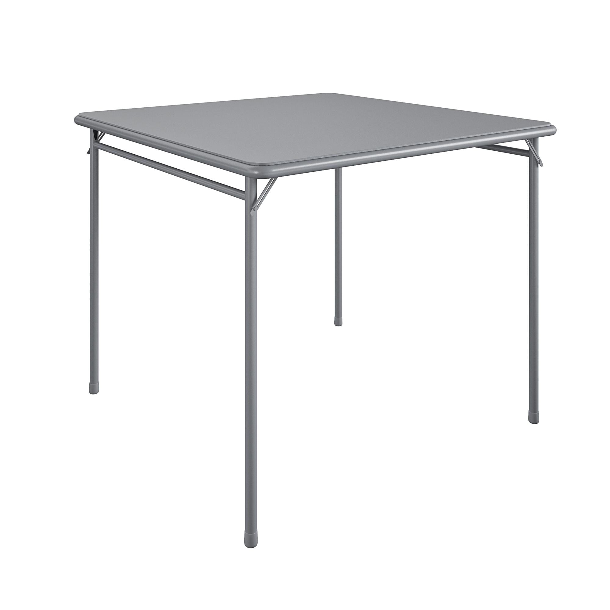 COSCO’s 5-piece folding vinyl table and fabric chair set is a trusted solution for quickly preparing a comfortable seating arrangement for four. The set will enhance any atmosphere ranging from family gatherings, parties, or tailgates. Comfortable for entertaining and compact for storage, our sets feature durable steel frames and a powder-coated finish. This gray set comes with a sturdy 34" square card table with low maintenance and easy to clean vinyl table top. The cross braces and tube-in-tube reinforced frame of the table guarantees a long-term investment you will enjoy for years! The four chairs, built for maximum comfort and durability, are upholstered in an attractive fabric with padding on the seat and back so you can relax in style as you enjoy with family and friends. The tables and chairs are made of a sturdy steel frame and rubber tips to protect your floors without fear of it slipping or scraping. When not in use, the set folds compact for easy storage. COSCO has been a trusted solution for hospitality, office products, and home improvement for over 80 years. Welcome this premium folding set into your home and experience the trusted comfort and durability that COSCO has built into our products throughout generations.