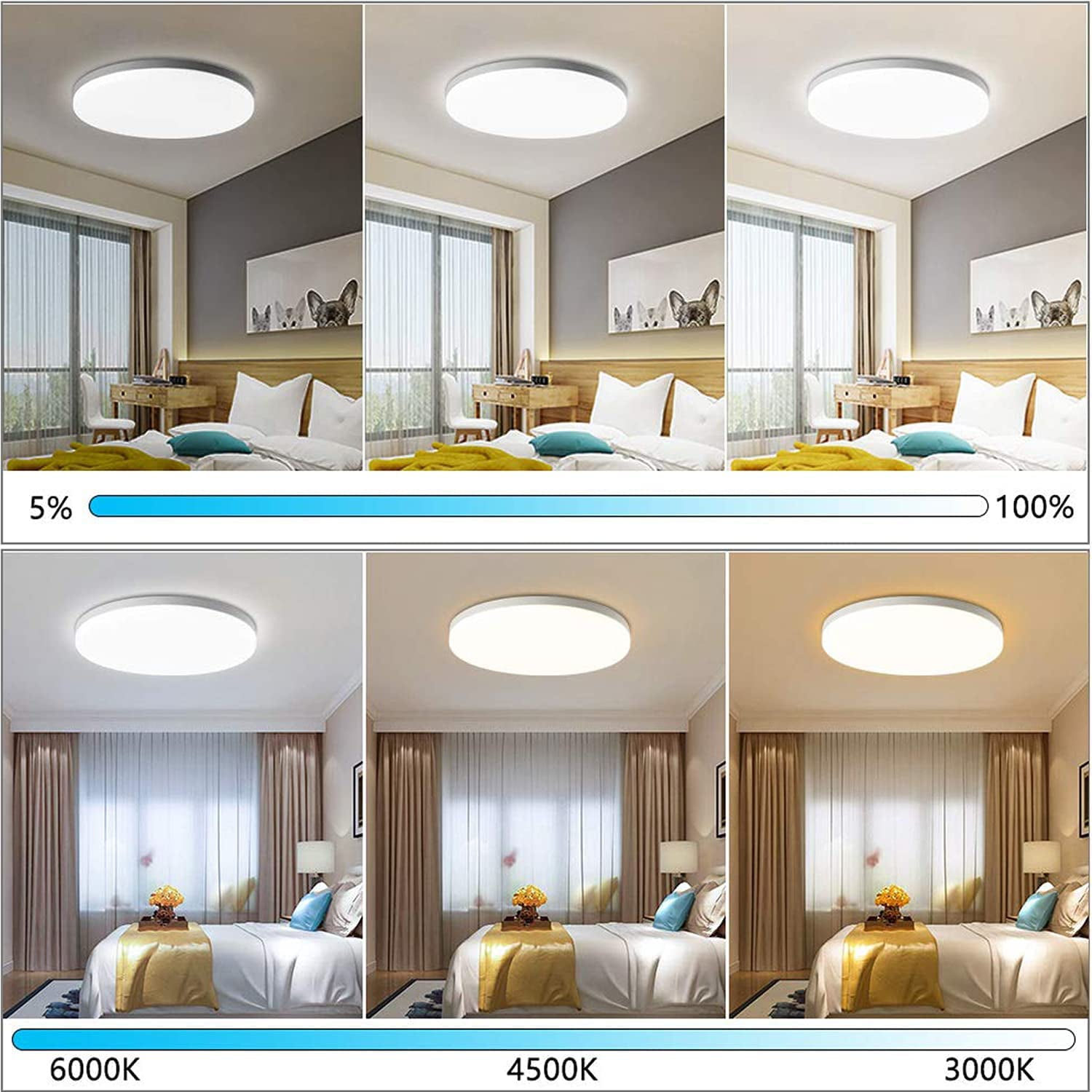 Ultra-thin & Natural light Ultra-compact design has little sense of pressure, making the space more spacious and modern. This ceiling light perfect for living room or bedroom, dining room, living room, bathroom, kitchen, hotel , balcony , hallway etc. The ceiling light have dimension of 13 inches, Dimmable and 3000-5000K 3 light mode color changing. Wireless remote control, 24W.