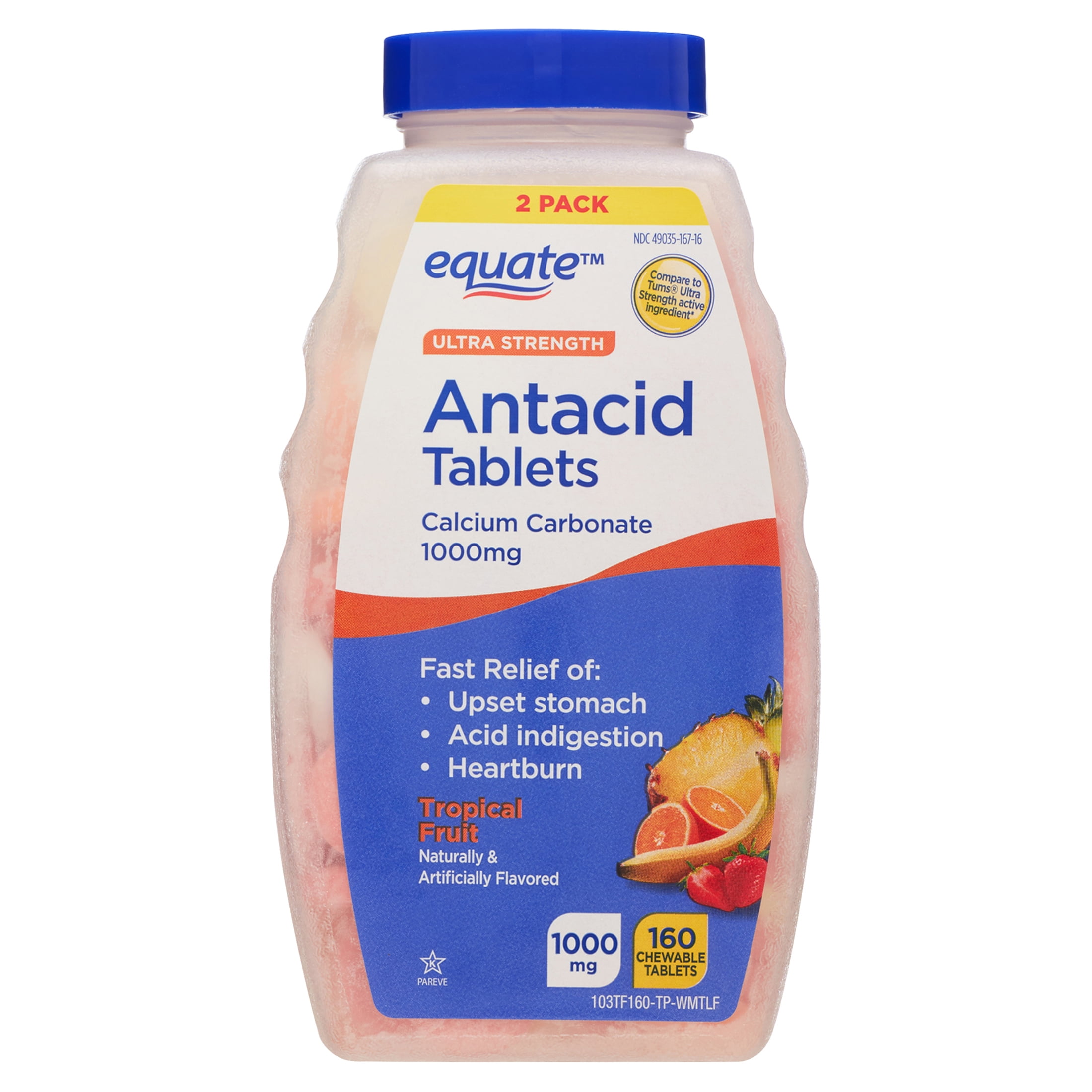 Equate Ultra Strength Antacid Tablets, Tropical Fruit, Twin Pack, 160 Count: