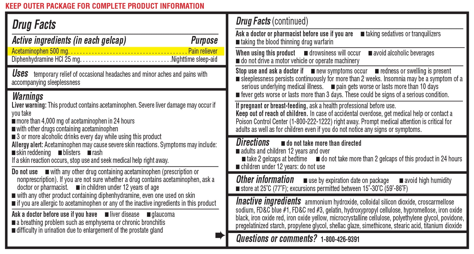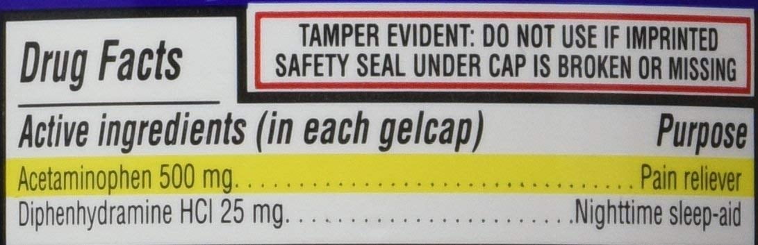 BrandFormGelcapsAge GroupAdultFeatures375 count bottle, Temporary relief of occasional headaches and minor aches and pains with accompanying sleeplessness., 500 mgAssembled Product Weight0.7 PoundsAssembled Product Dimensions (L x W x H)5.00 x 3.00 x 3.00 InchesTemporarily Relieves: Headache Minor Aches and Pains Accompanied by Sleeplessness