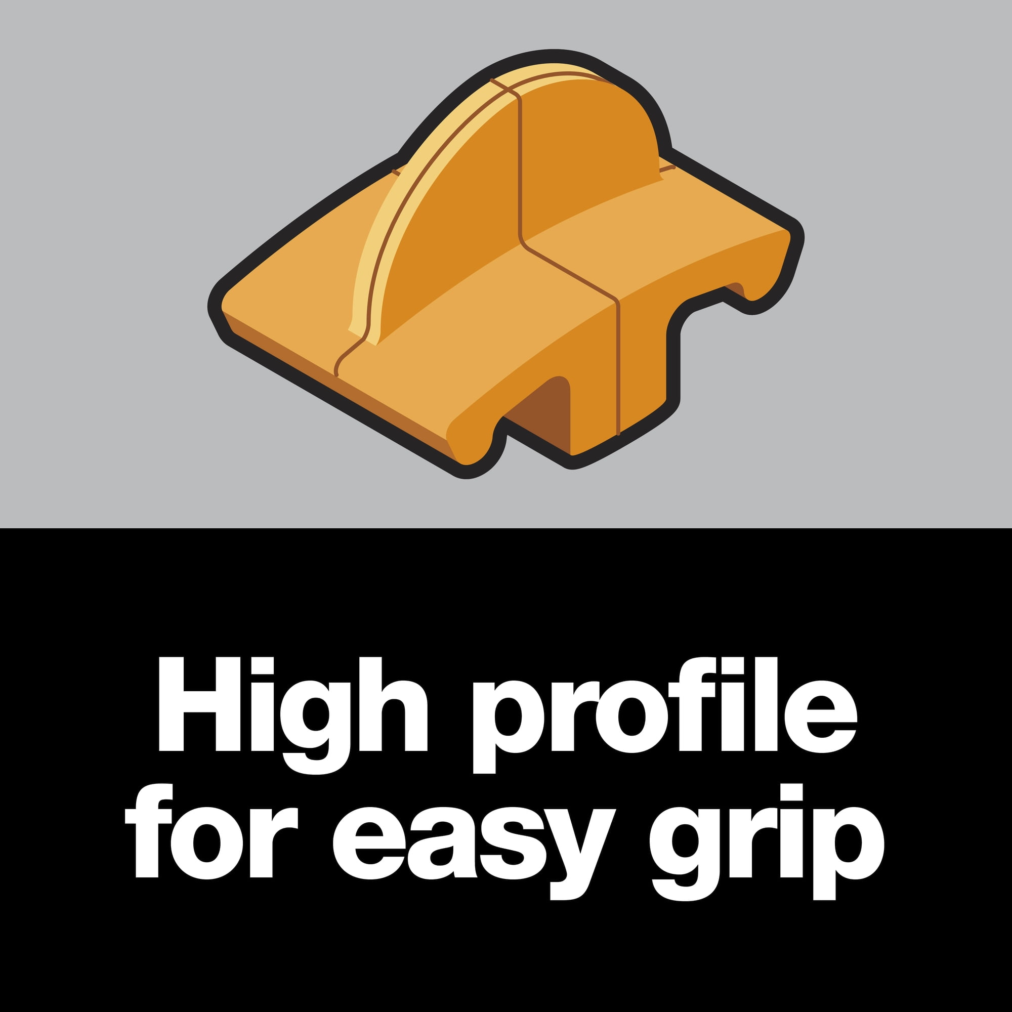 - Resists wear, scratches and corrosion with a high-profile grip for easier grasp