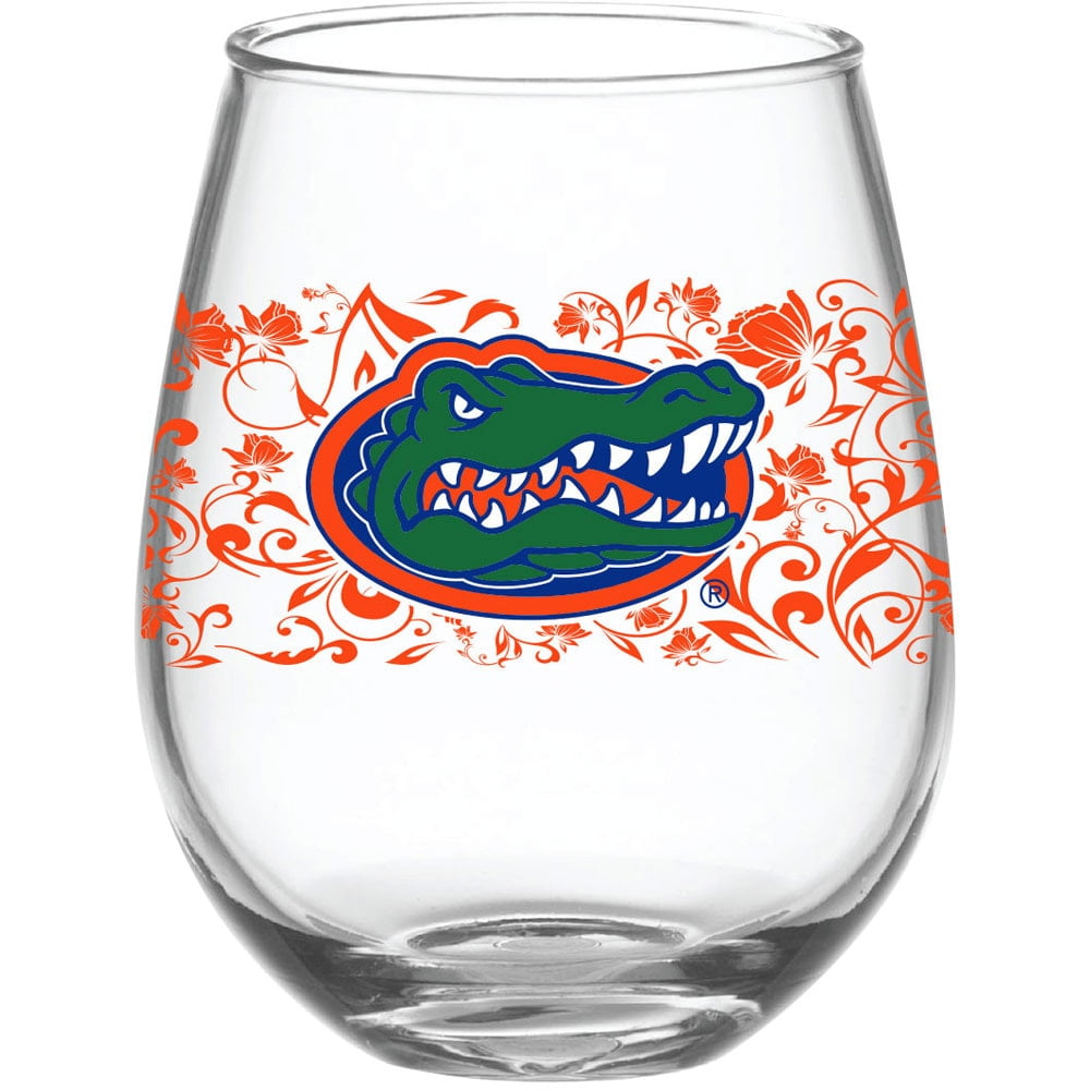 As you prepare to catch all the action on game day, show off your Florida Gators passion in style with this stemless 15oz. wine glass. This wine connoisseur must-have is blooming with a unique floral pattern that expresses your love for the Florida Gators.
