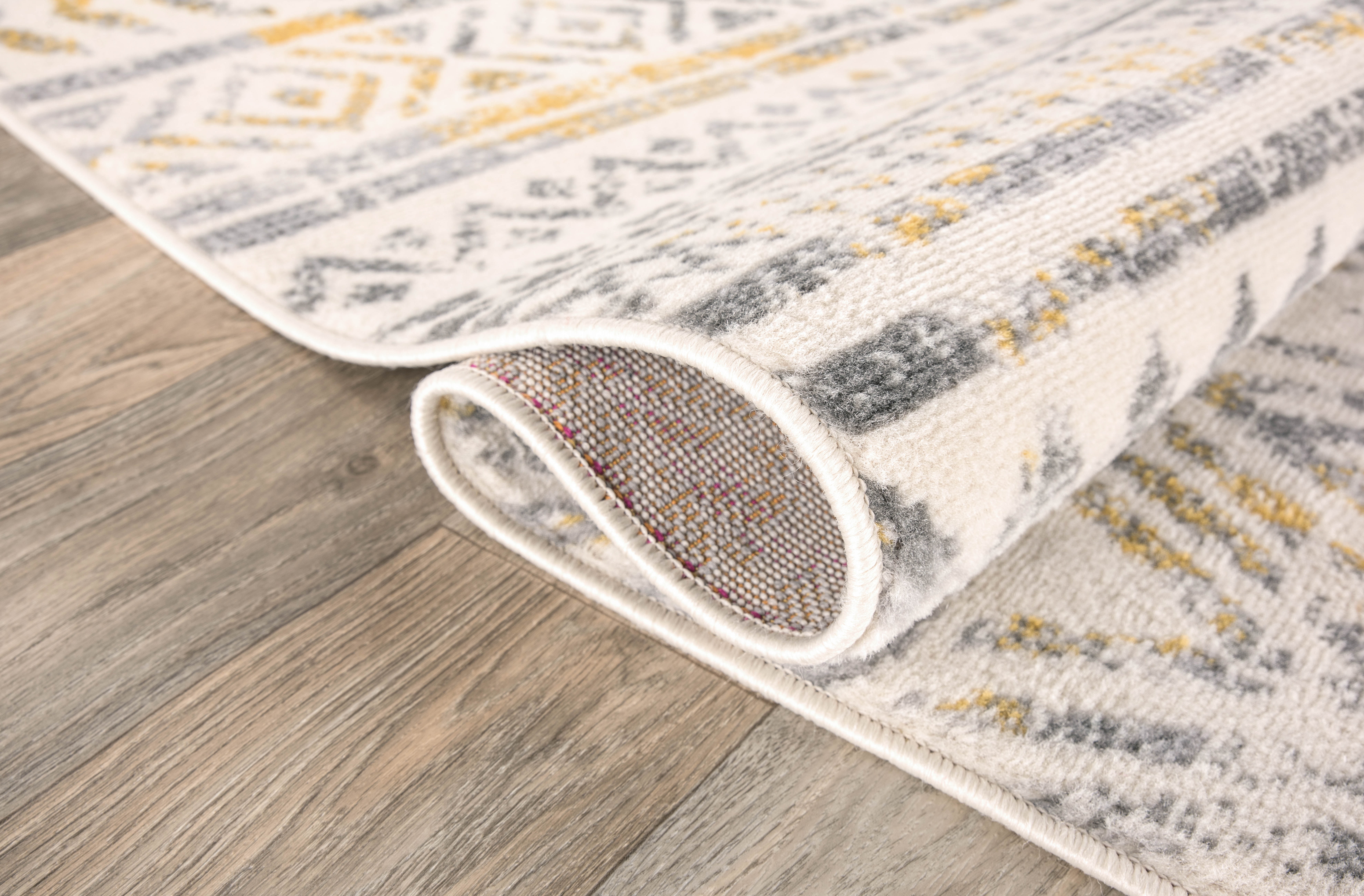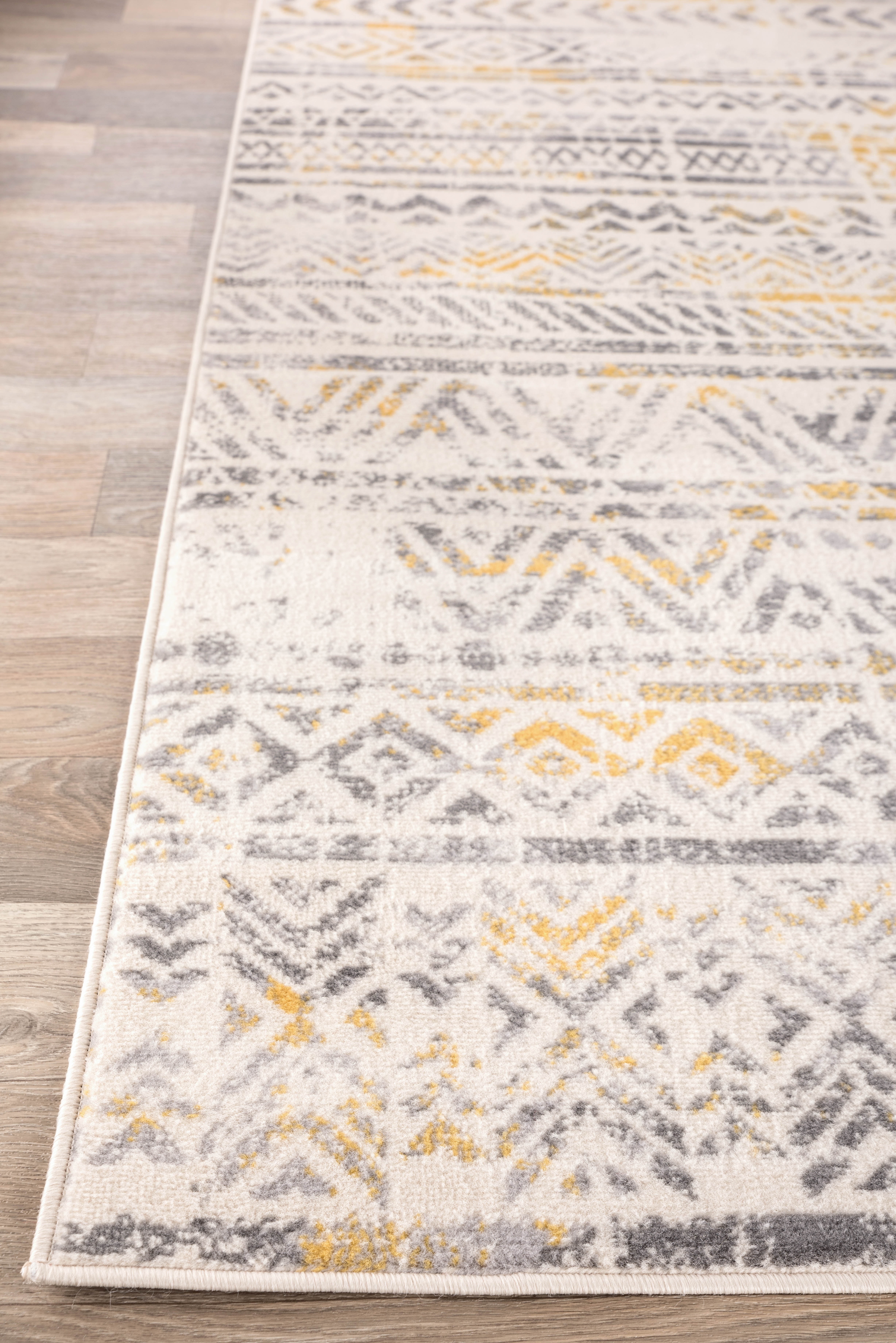Experience the comfort, durability and style of this bohemian motived geometric rug. It features a more ate pile height of 0.31 inches, which makes extremely easy to spot clean and vacuum. It is expertly crafted using 100% of the finest polypropylene fabric and jute backing.