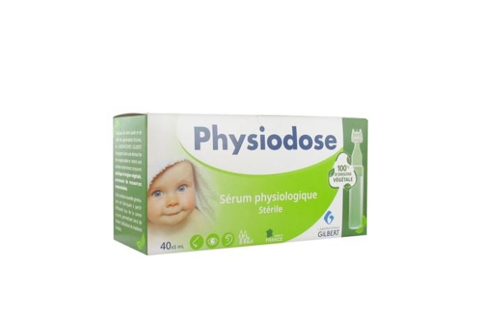 Gilbert Physiodose Sterile Physiological Serum 40 Vegetable Single Doses is a sterile physiological serum, without preservatives Presented in single doses, it is hygienic and allows ease and safety of use. This physiological serum is recommended in infants, children and adults: For nasal hygiene: instillation or washing for dry or cluttered noses. For eye hygiene: instillation, washing or bathing. For the ear rinse. For washing the wounds. Single doses made entirely of plastic of vegetable origin from renewable resources, 100% recyclable. Made in France.Gilbert Physiodose Sterile Physiological Serum 40 Vegetable Single Doses