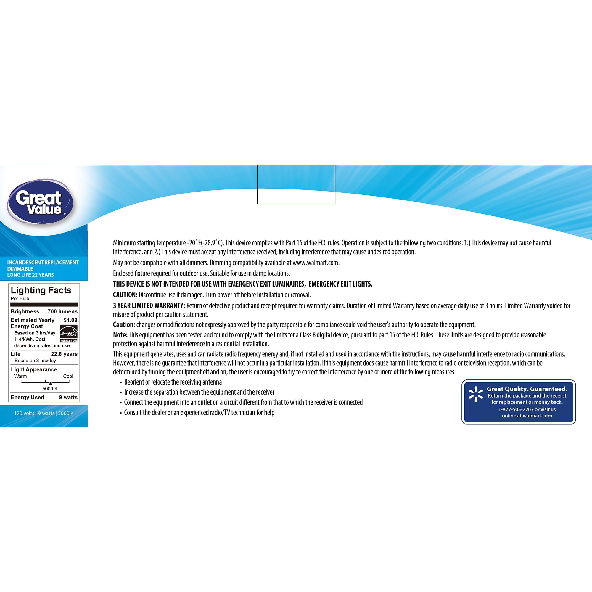 Great Value LED Reflector, 8W, Daylight, 4 Count