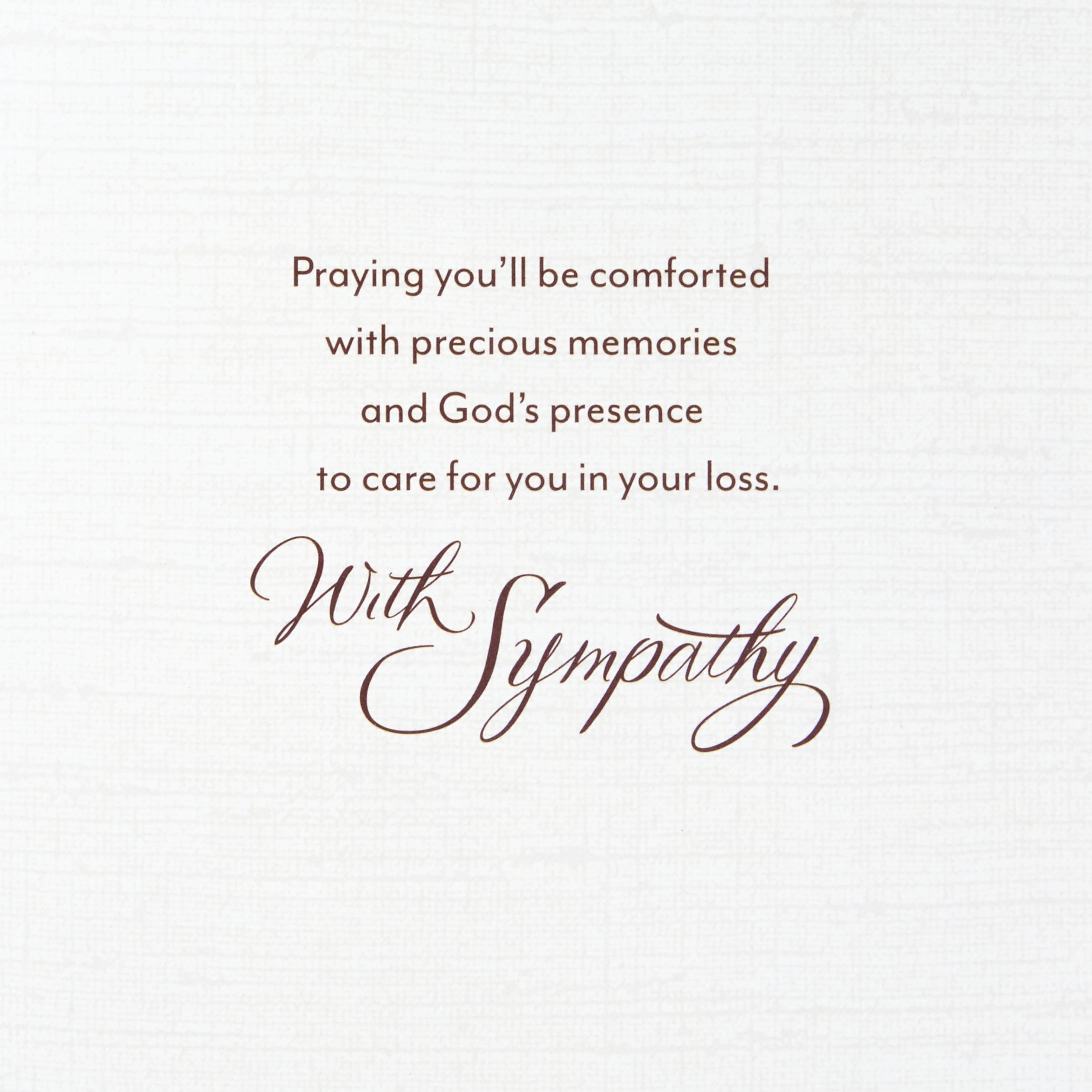 Reach out with a comforting note in tough times with this religious sympathy card featuring a blurred photo of dogwood blooms with a black ribbon near the fold. Card measures 5.8" x 8.3", and an envelope is included. The Hallmark brand is widely recognized as the very best for greeting cards, gift wrap, and more. For more than 100 years, Hallmark has been make everyday moments more beautiful and celebrations more joyful.