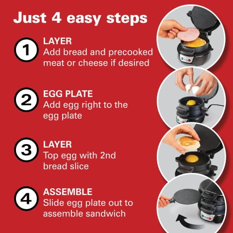 - JUST 4 EASY STEPS: Building your breakfast sandwich comes together in just a few easy steps with this breakfast maker — and you don’t even need to leave your house.