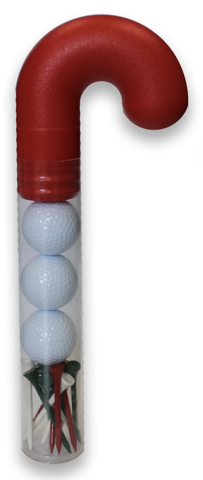 Holiday Golf Ball Candy Cane with Tees The perfect gift for the Golfer on your list. Each Candy Cane includes 3 Tournament quality balls 2 piece Solid core construction 352 dimple pattern and 10 wooden colored golf tees 2 3/4”