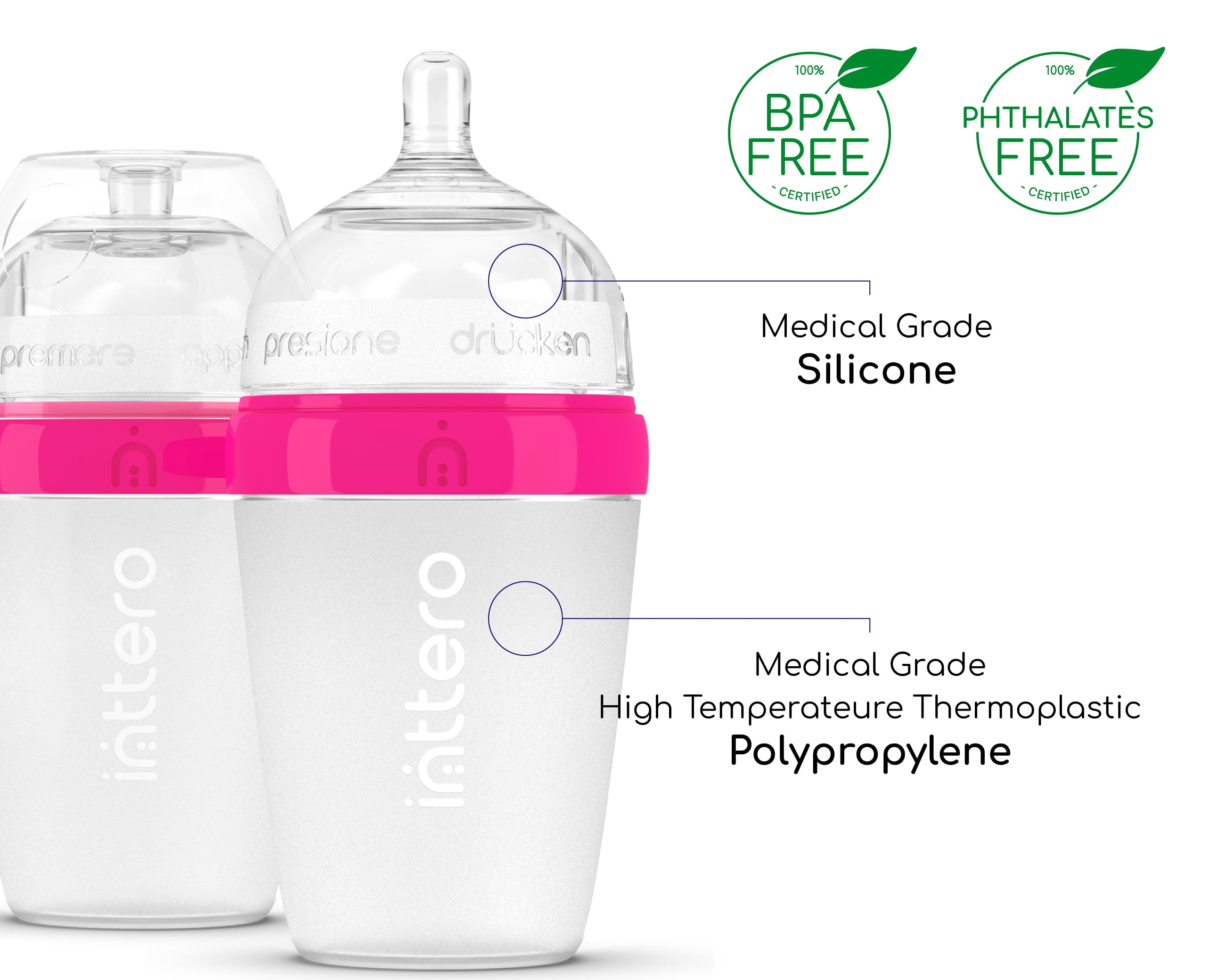 Inttero Pre-loadable Anti-Colic Baby Bottle, 9oz, 2-Pack, Modern Pink