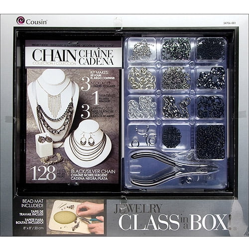 Learn simple and exciting techniques to make jewelry just like you see in department stores. Cousin’s Jewelry Class in a Box kits are the perfect solution for everything you need to create fantastic jewelry with professional results. Clear photos and illustrations will take you step-by-step through each technique and all the tools and supplies you need are included. Each Jewelry Class in a Box kit contains one 3-in-1 Jewelry Tool; one 8-inch by 8-inch bead mat; assorted beads and findings for completing the projects; and one project book. Imported.