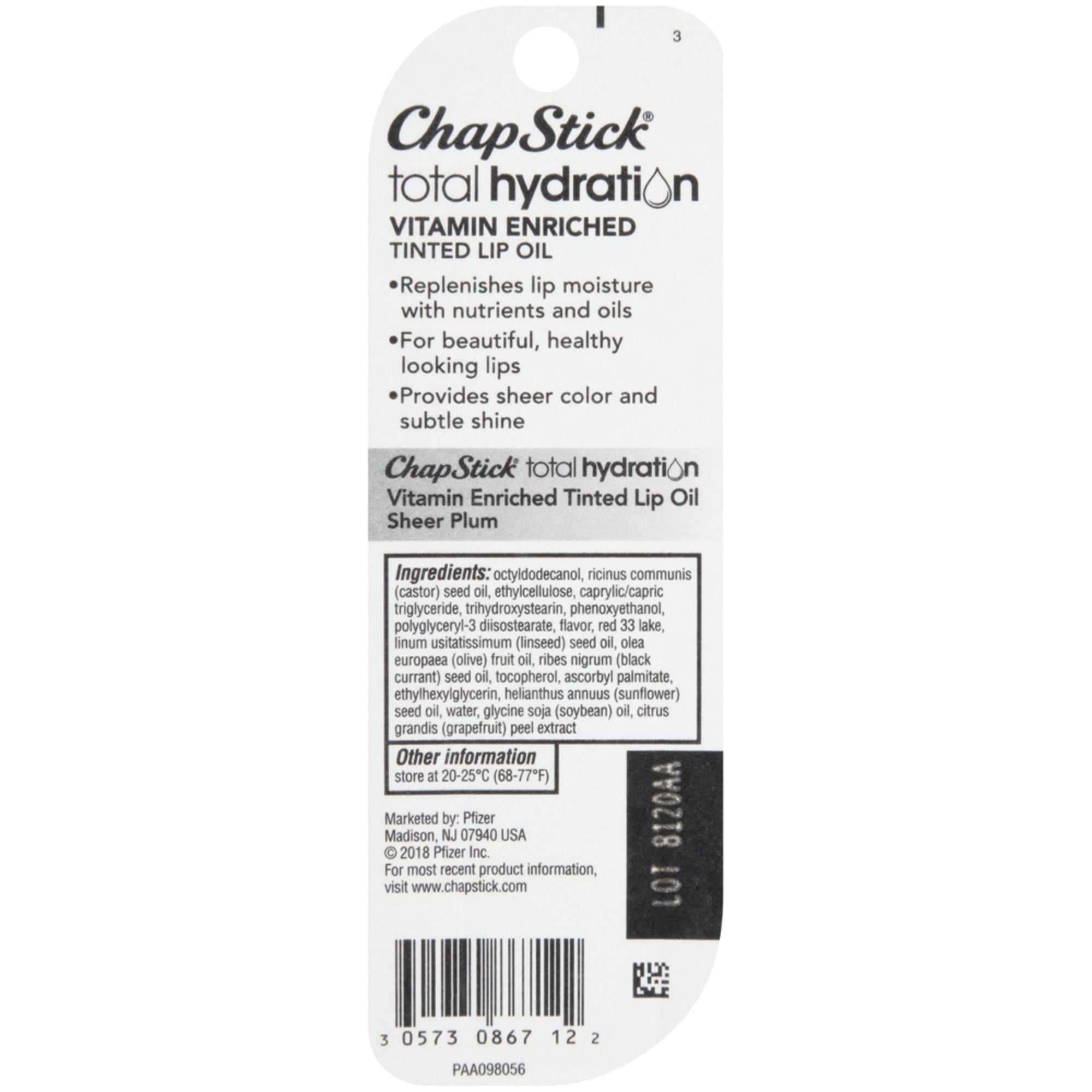 ChapStick Total Hydration Vitamin Enriched Sheer Plum Tinted Hydrating Lip Oil Tube – 0.24 Oz