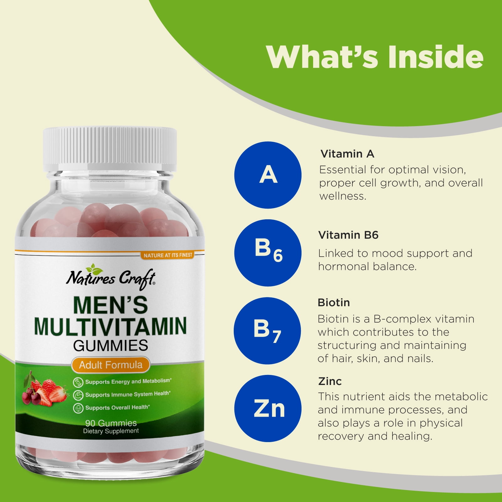 - Men’s daily multivitamin – Boost your health with our complete multivitamin gummies for men packed with the necessary daily vitamins for adults including folate biotin and other men’s multivitamins