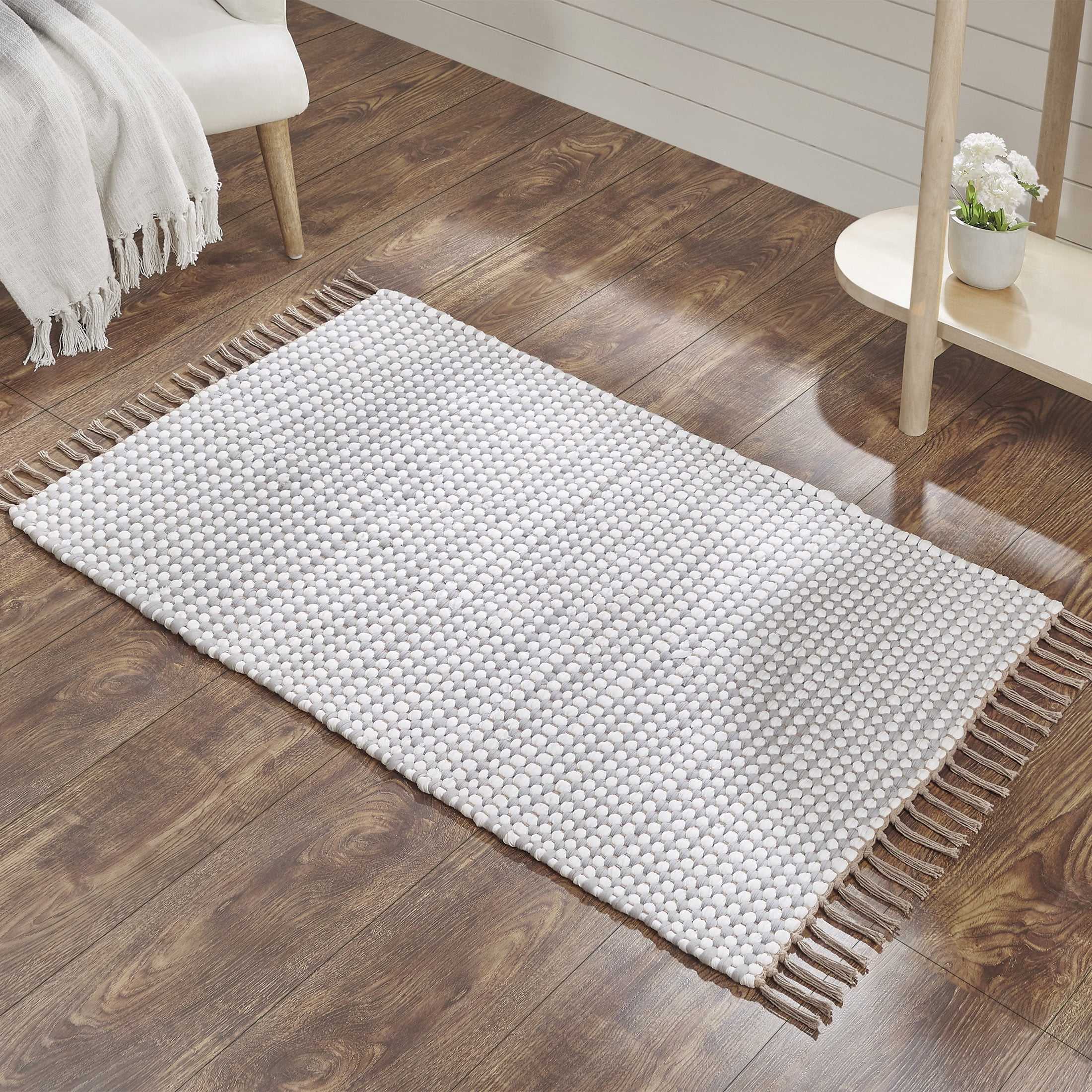 Add texture and dimension to your floors with the My Texas House Sienna Multi Stripe Reversible Flatweave Indoor Area Rug. Perfect for the bedroom, living room, office décor, or anywhere you want to add an eye-catching accent, this scatter rug features grey and white fabric and contrasting tassels on each side for added flair. Each rug is woven by hand to create a perfectly imperfect texture that is one of a kind. This lightweight scatter rug measures 27 inches x 45 inches and is fully reversible for long-lasting use. You can keep the accent rug looking new by spot cleaning stains with a dry cloth or wiping them with a damp cloth and dish soap-water mixture.