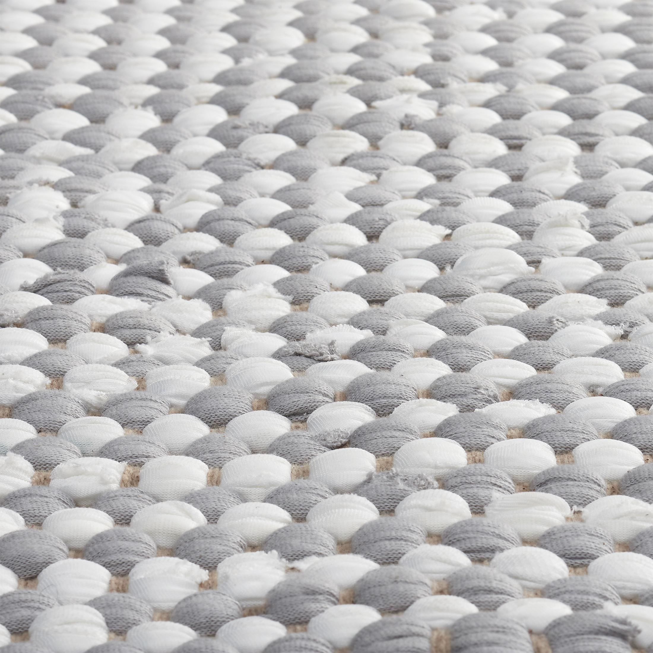 - Features handwoven grey and white fabric with contrasting tassels