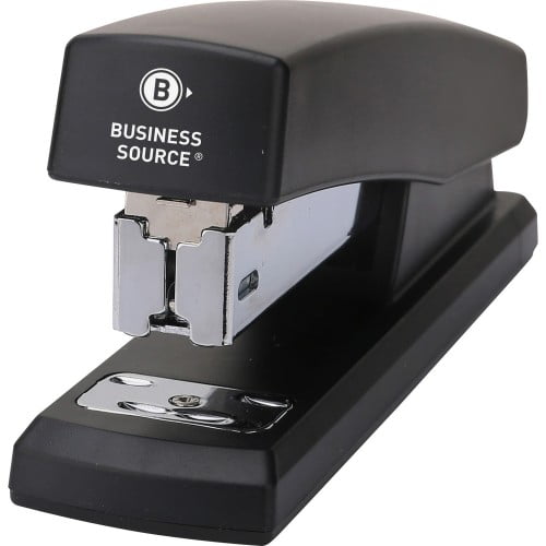 Desktop stapler features all-metal working parts with an unbreakable plastic body. Fasten up to 20 sheets at a time. Rotating anvil allows stapling or pinning. Throat length is 3-1/2" (90mm). Stapler opens for tacking and uses a 210-strip of standard staples. Unbreakable plastic body provides long-lasting stapling performance Rotating anvil quickly switches between staple or pin settings Easy-to-refill construction accepts full strip of standard staples Designed to fasten up to 20 sheets of paperNew Business Source Full-Strip Desktop Stapler,Each