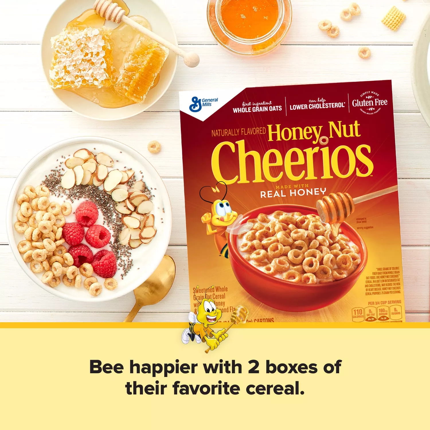 Honey Nut Cheerios Cereal will let you "bee" happier with two boxes of their favorite cereal. This gluten-free breakfast cereal makes breakfast even sweeter with the irresistible taste of golden honey. It’s a family favorite!New Honey Nut Cheerios Gluten-Free Cereal (24 oz, 2 Pk)