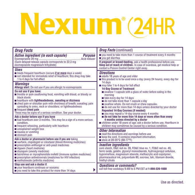 Nexium 24HR Acid Reducer 20mg., 42 Capsules