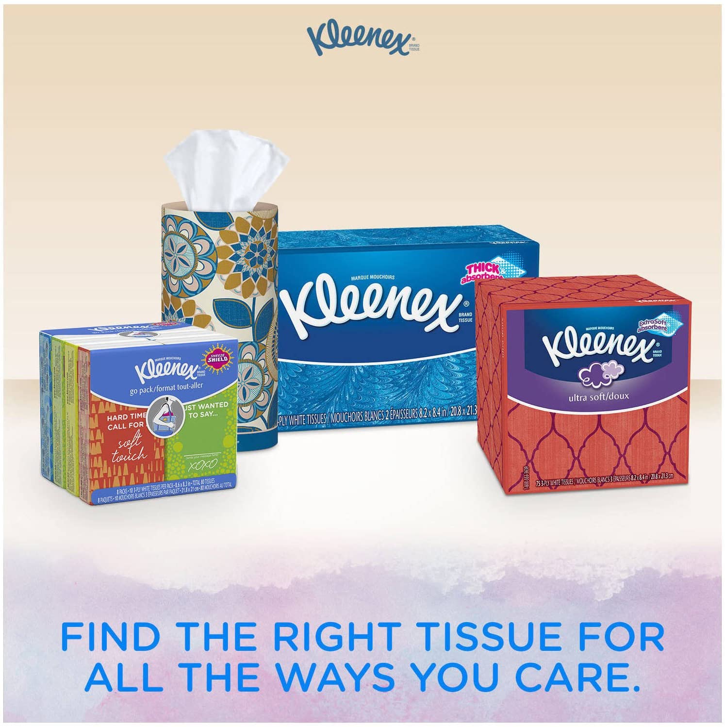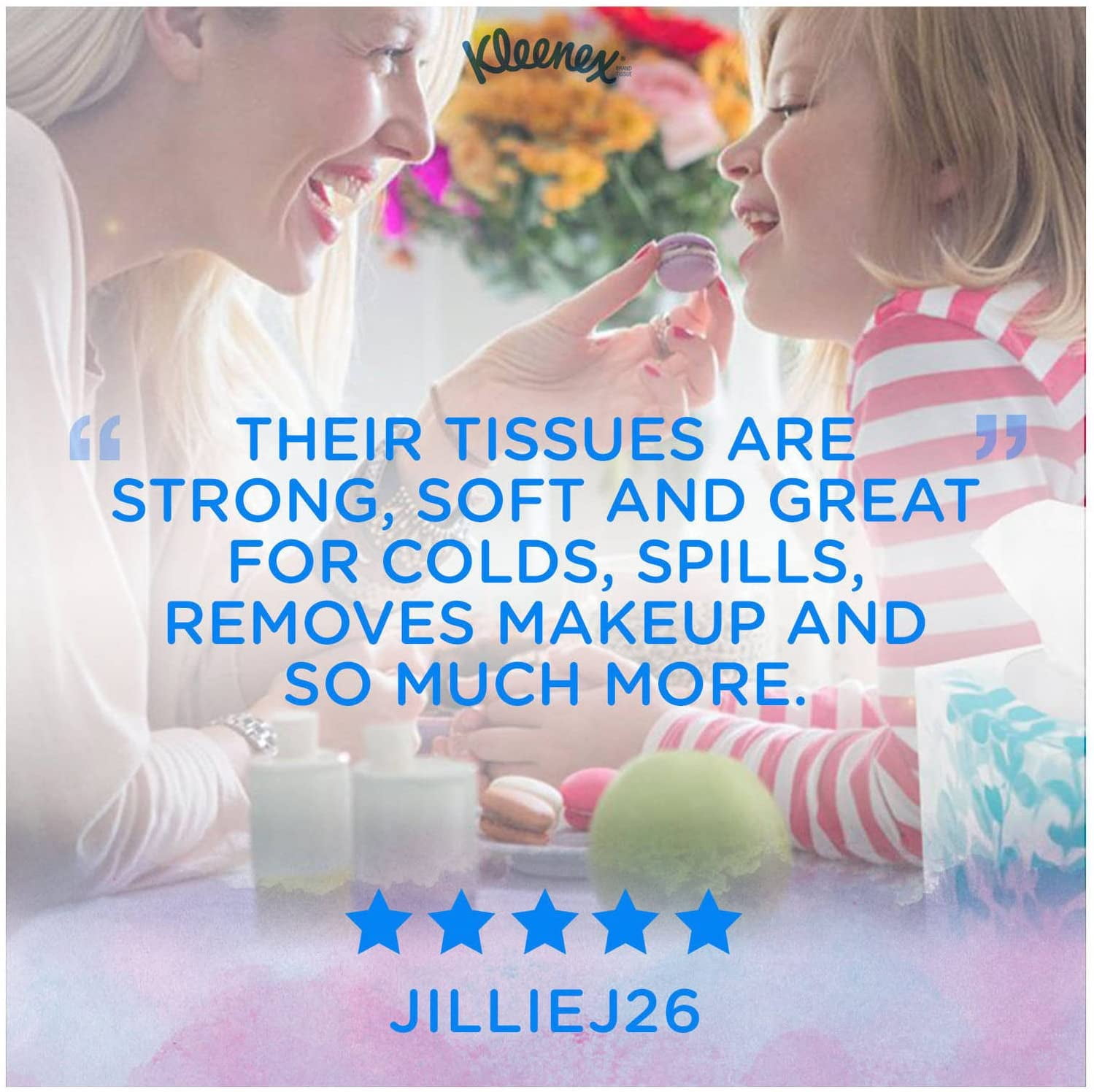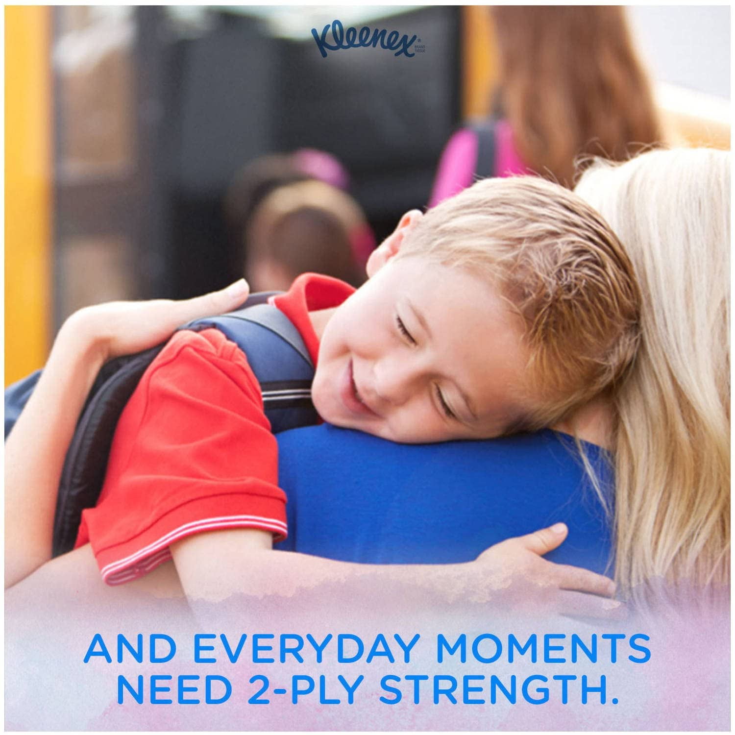 Pack of 6 Everyday Facial Tissues – 85 Tissues per Flat Box- Description – One soft tissue is all it takes to show you care. Reach for gentle Kleenex Everyday Tissues for a friend, a stranger or yourself. With the perfect balance of softness and strength, Kleenex facial tissues are durable with 2-ply thickness and are absorbent to lock in moisture. Our essential Kleenex facial tissues are perfect for makeup smudges, sniffles and sneezes.Pack of 6 Everyday Facial Tissues – 85 Tissues per Flat Box