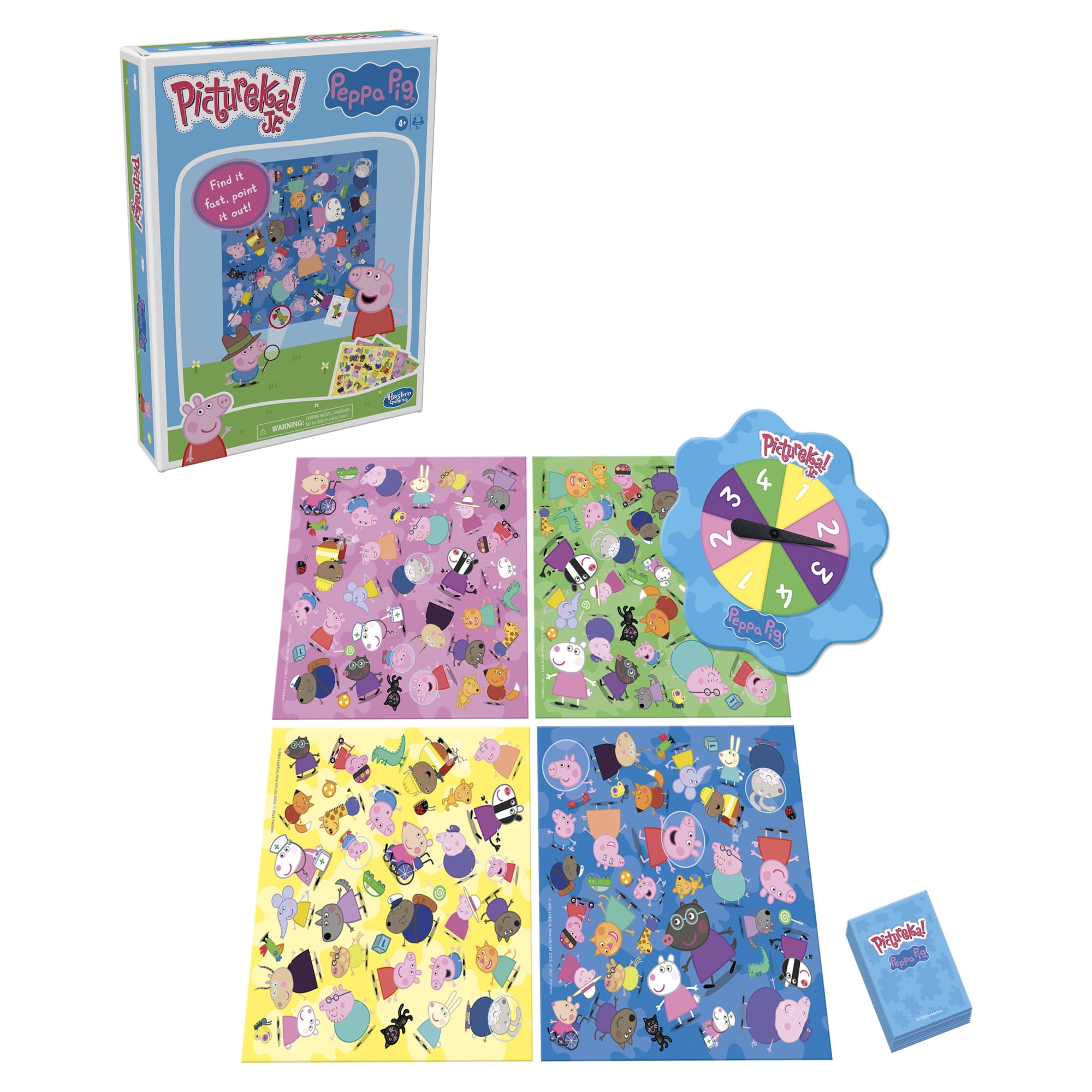 No reading required to play this fun preschool game. Kids will love playing the Pictureka! Junior Peppa Pig game, as they try find it fast and find it first in this picture game! The anticipation builds with every round as players choose mission cards, each with its own category. Then it’s a frantic frenzy to find the picture on the tile that matches those on a mission card, and be the first one to shout "Pictureka"! This board game is an easy and fun game for preschoolers, and it’s a great game for kids 4 year olds and up.