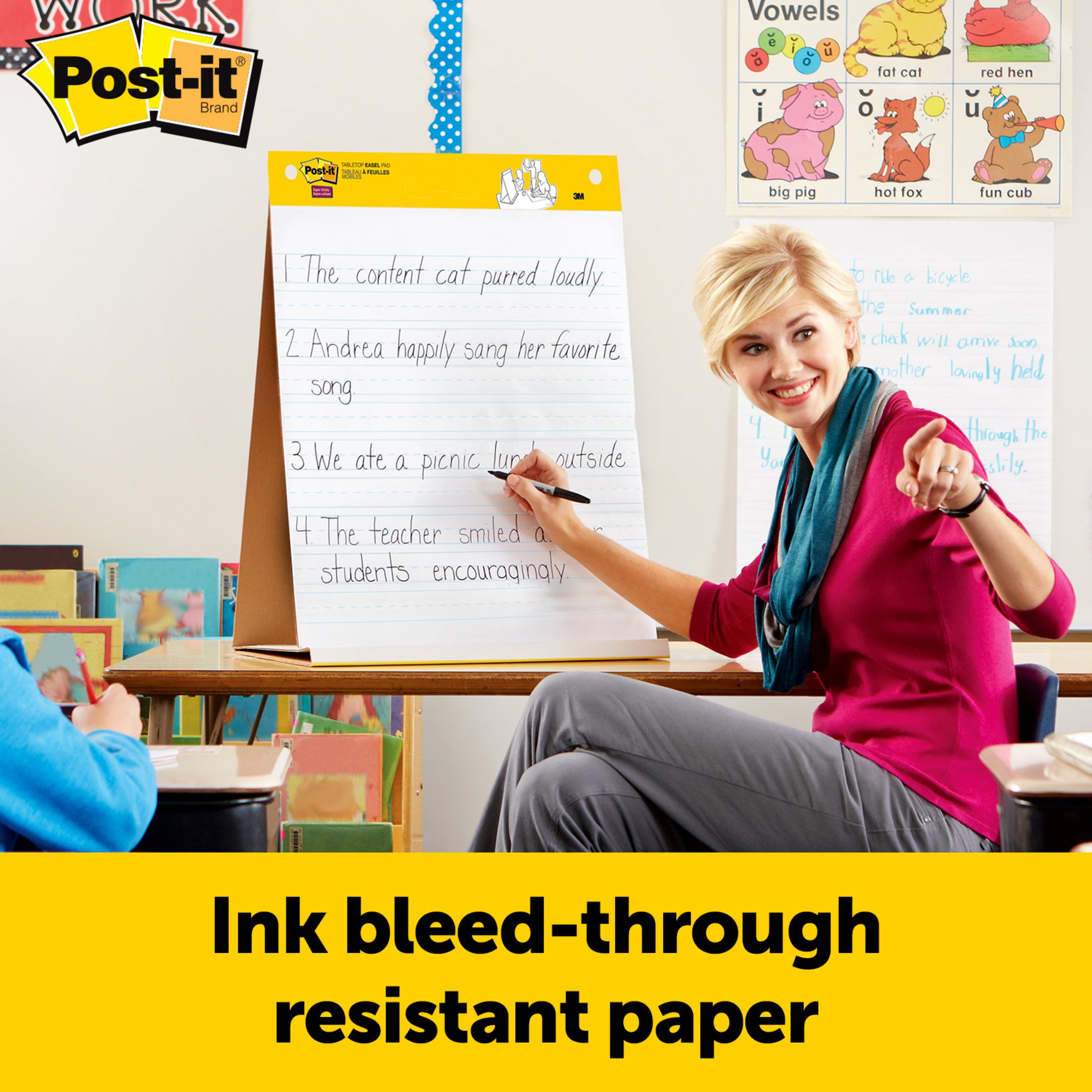 - INK BLEED-THROUGH RESISTANT PAPER – Large white primary ruled premium self-stick flip chart paper that resists marker bleed-through to keep great ideas on the page, not on what’s under the page.