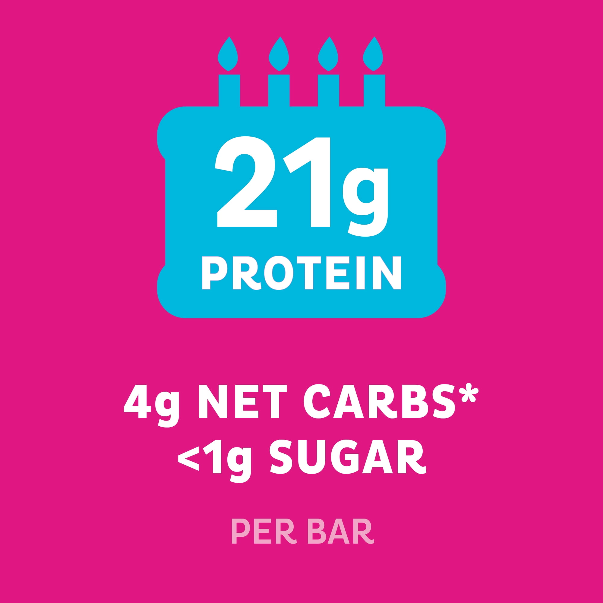 - EVERY DAY CAN BE YOUR SPECIAL DAY: The Quest Birthday Cake Protein Bar tastes like a slice of birthday cake you can enjoy every day. Celebrate with 20g protein 4g net carbs and less than 1g of sugar per bar.
