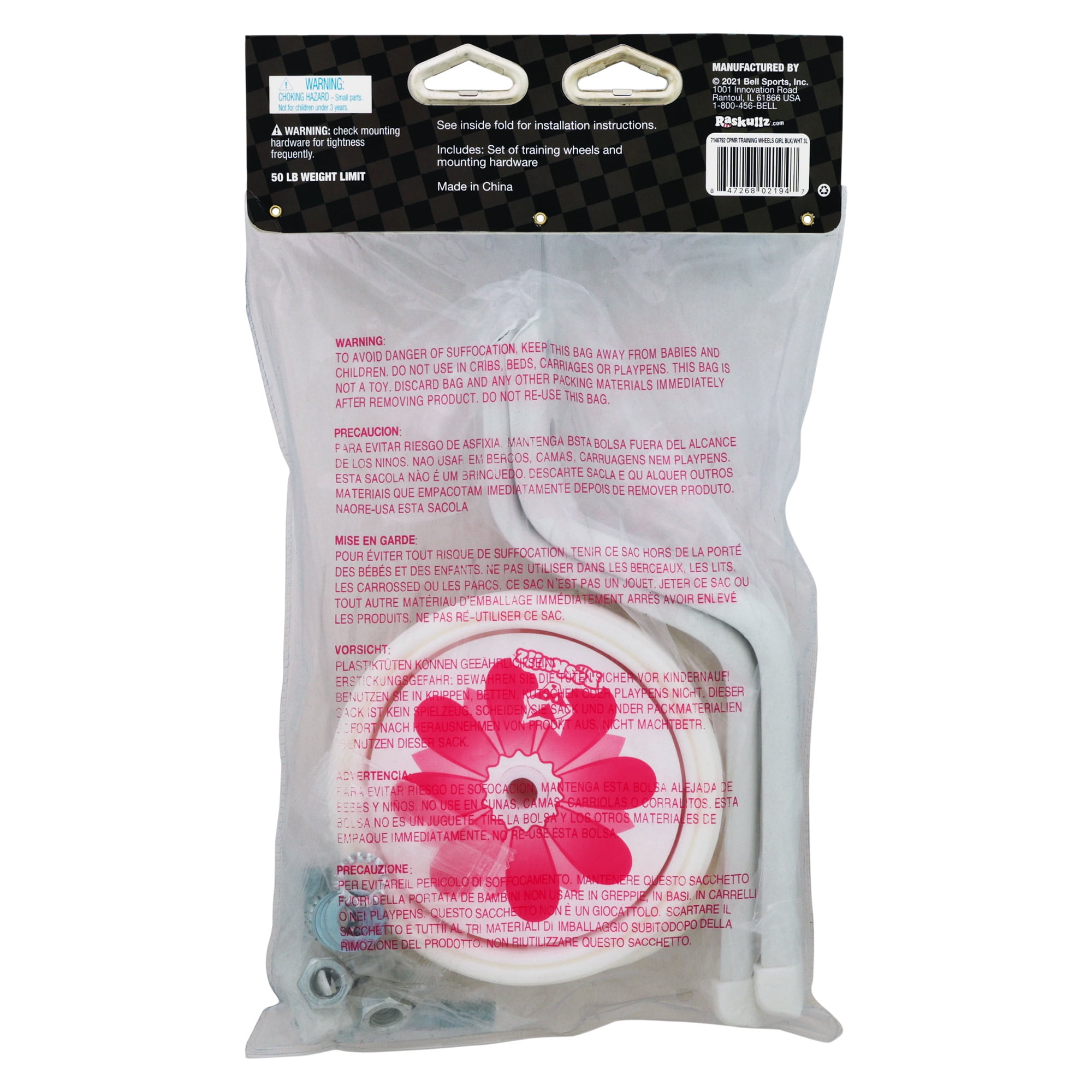 The Raskullz Girl Pink/White Adjustable Bicycle Training Wheels give kids the confidence to venture out on their own before learning how to ride on two wheels! The cool interchangeable caps give their bikes added style. Wheels are made of durable construction for long life and mount easily to most 12-20 inch bikes.