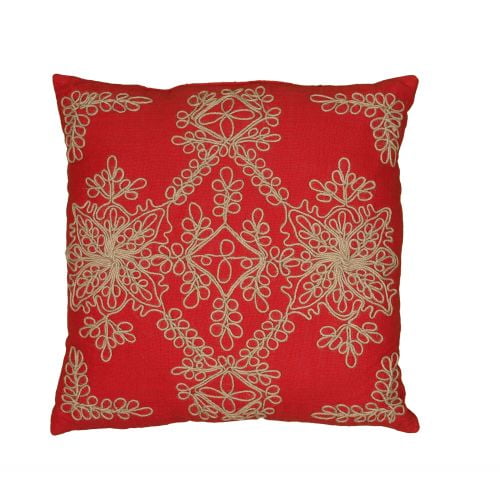Rizzy Home Jute Cord Stitch Pillow 18" x 18" in Red ColorRizzy Home Applique, Jute Embroidery Cotton Cording Details Pillow Cover with Hidden Zipper made with Front/Back: 100% Cotton exclusive of decoration, Lining : 100% Polyester . Pattern is medallion. You can clean it with Cotton Wash / Machine Wash in Cold Water.. Lay Flat to Dry.