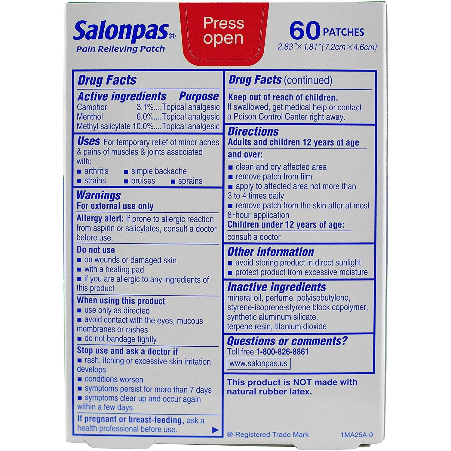 alonpas 15ct Lidocaine 4% Maximum Strength Pain Relieving Gel Patch Size: 3 15/16" x 5 1/2" (10cm x 14cm) For Temporary Relief Of: Back Pain Neck Pain Shoulder Pain Knees & Elbow Pain About This Item: Unscented Numbing Relief Desensitize Aggravated Nerves Rounded Corner For Better Addhesion Center Cut Film For Easy Application Stretchable In All Directions Child Resistant Packaging Individually PackedSalonpas Maximum Strength Lidocaine 4% Pain Relleving Gel-Patch. 15 patch box.