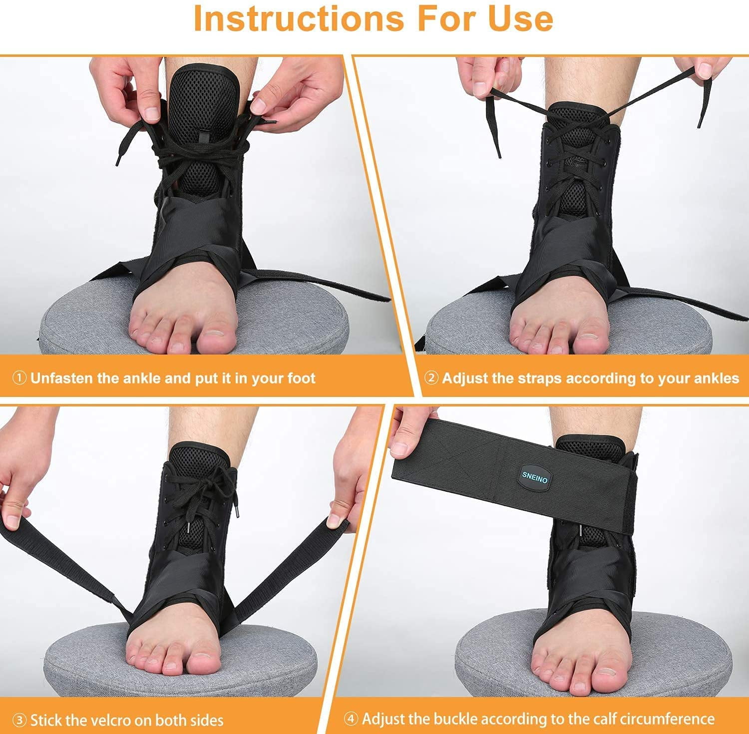 SNEINO Ankle Brace – Lightweight Adjustable Lace-up Ankle Support Stabilizer, Black, Small