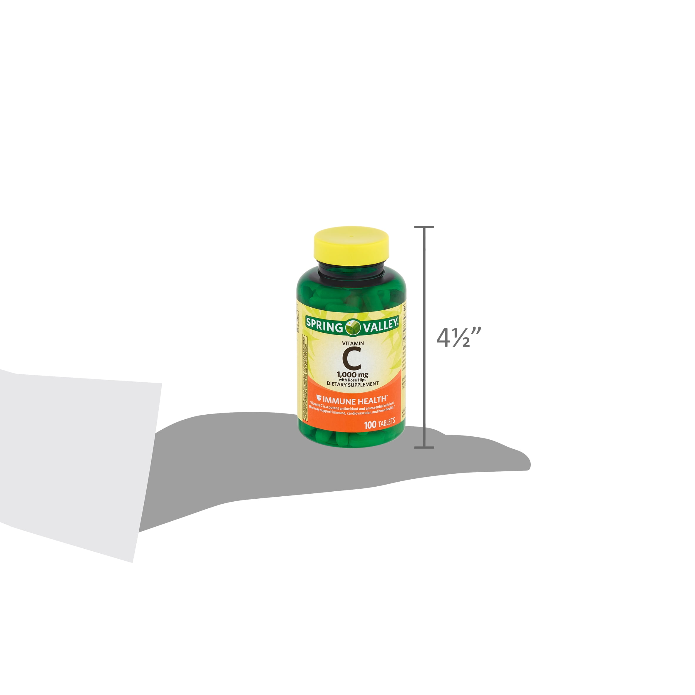 Spring Valley Vitamin C with Rose Hips Tablets Dietary Supplement, 1,000 mg, 100 Count:
