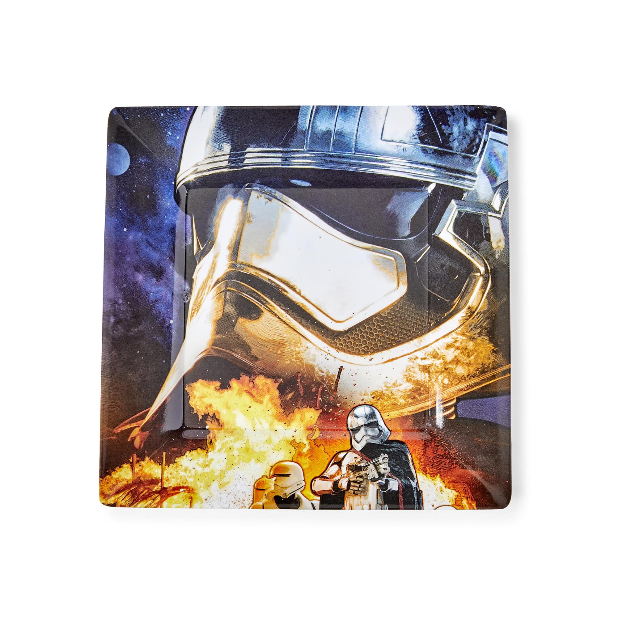 Dine like the heroes and villains of a galaxy far, far away would with the Star Wars: The Force Awakens Comic Plate Set! Use the power of the Force at your next dinner party with this set of 4 durable Melamine plates! These stylish plates feature characters from Star Wars: The Force Awakens, including: Captain Phasma, Kylo Ren, BB-8, and a First Order Stormtrooper! You’ll be eating like a Hutt and wishing your stomach was bigger than a Sarlacc’s with this set!Star Wars Melamine Plate Set – 4 Pieces – Stormtrooper, Kylo Ren, and BB8