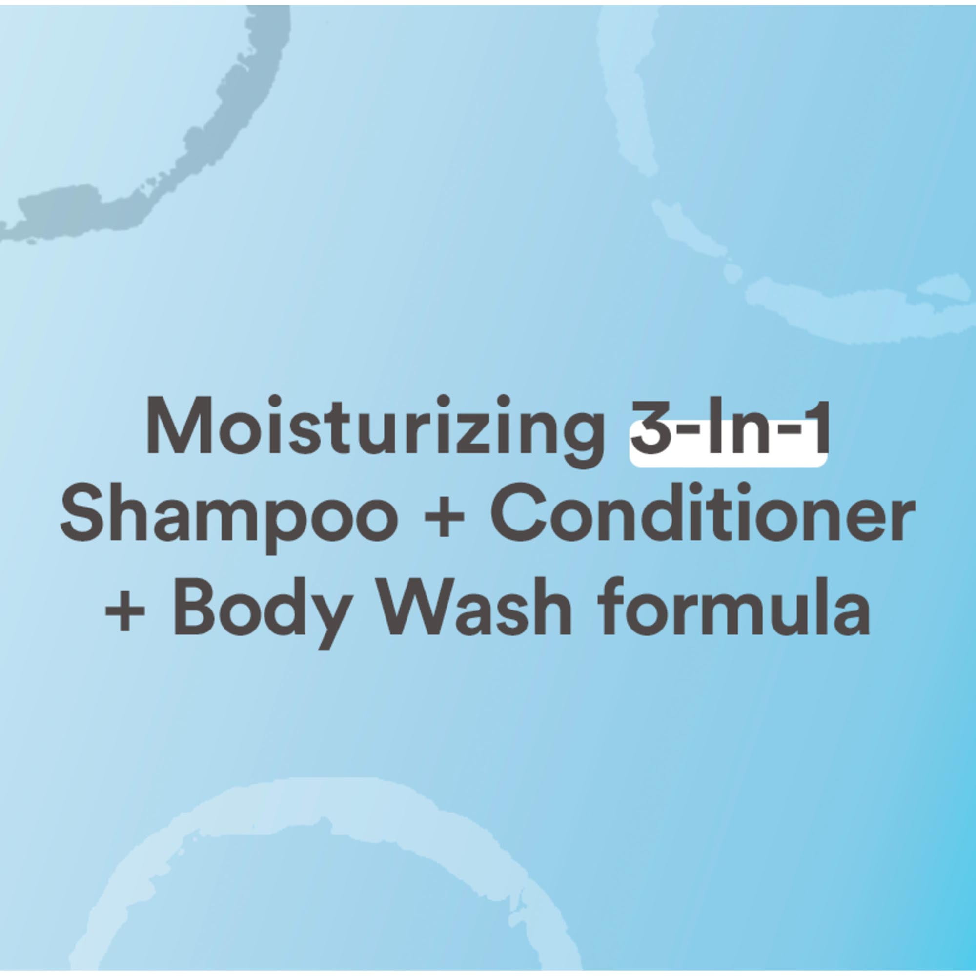 - Shampoo, conditioner and body wash that provides a gentle, head-to-toe clean
