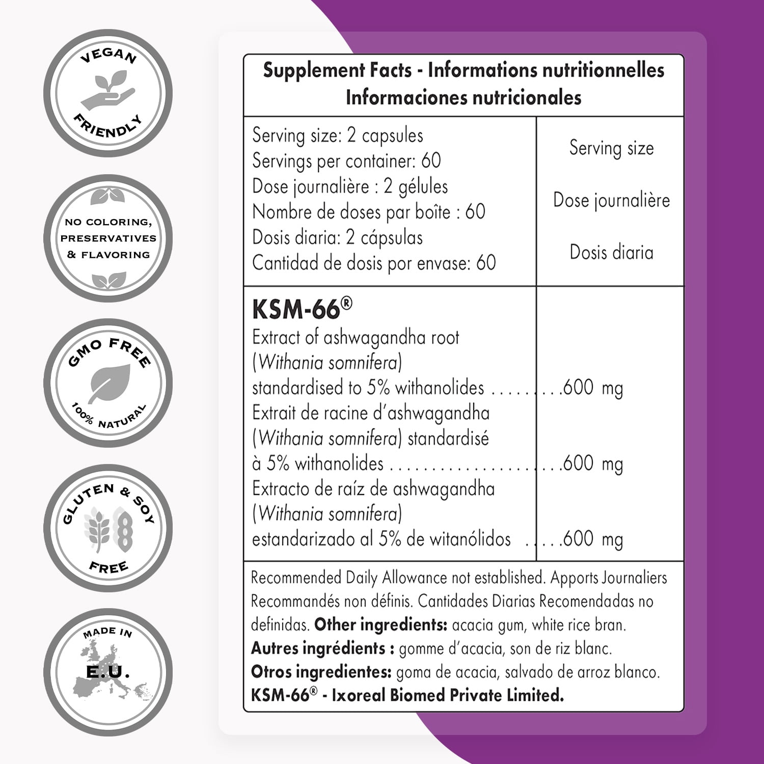 - POTENT FORMULATION – Contains the patented ashwagandha root extract KSM-66, standardized to contain more than 5% withanolides.