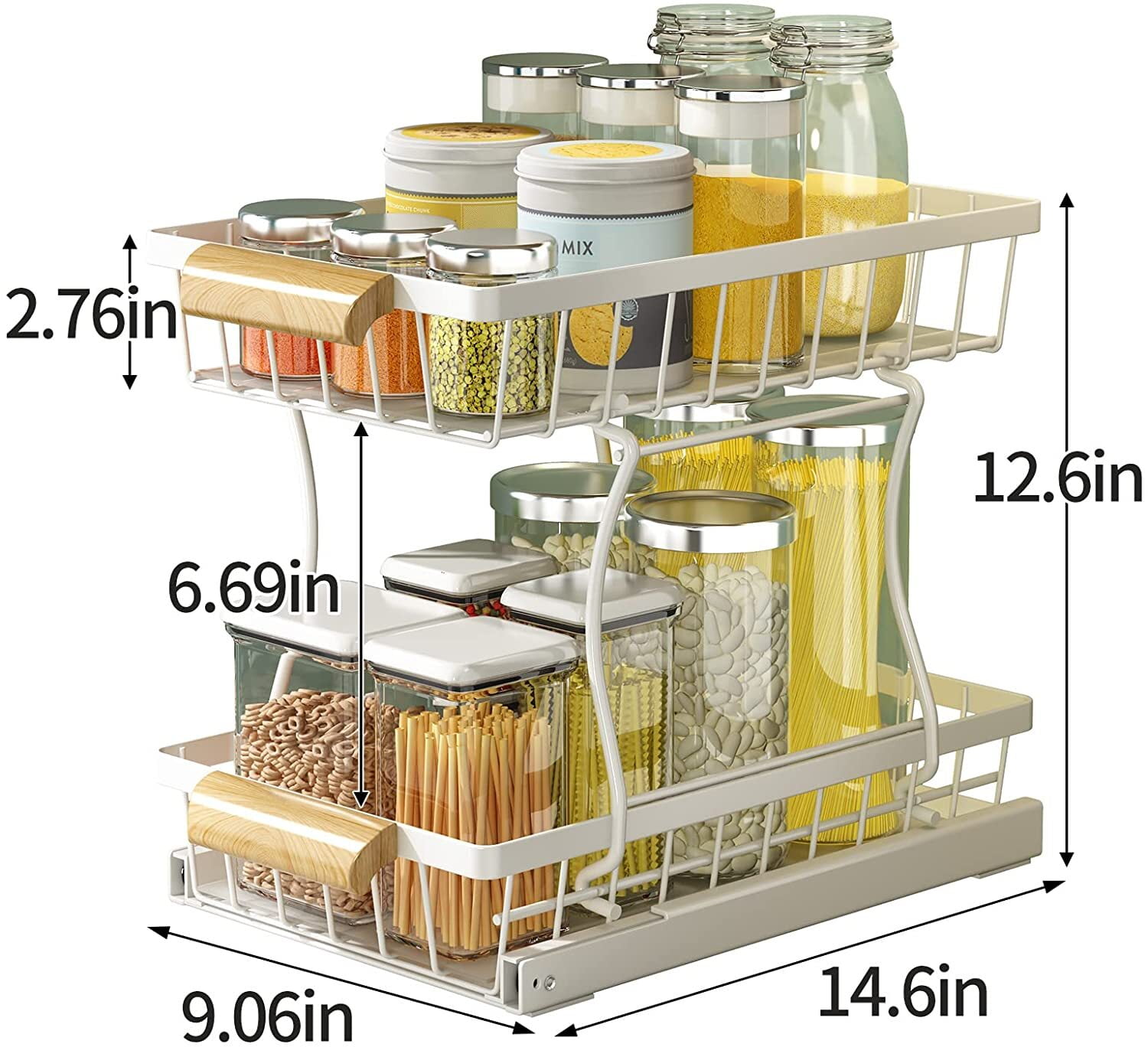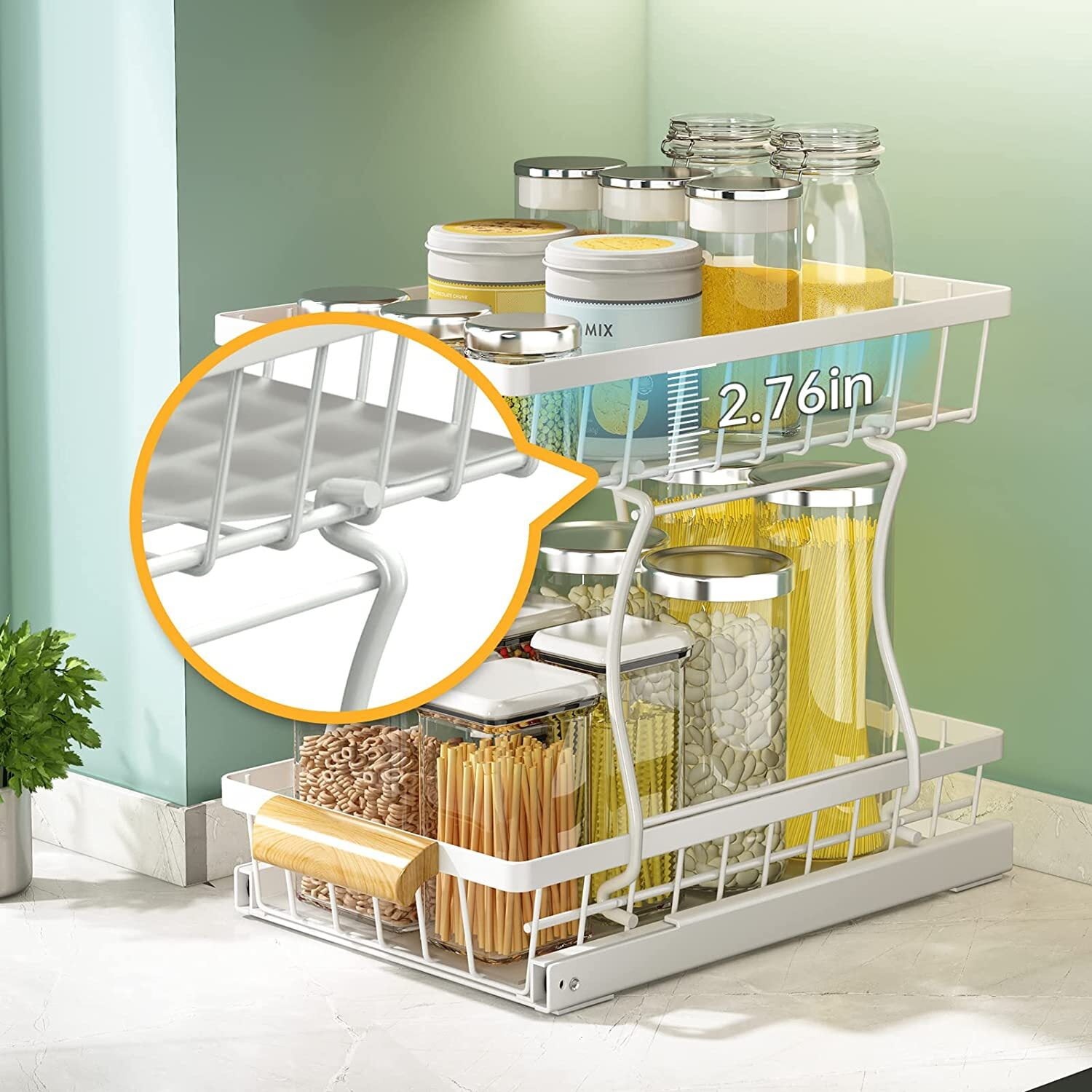 - CABINET ORGANIZING SOLUTION: 2-tier sliding cabinet basket organizer drawer those difficult under sink areas in kitchen, perfect for all kitchen gear, cleaning and bath supplies