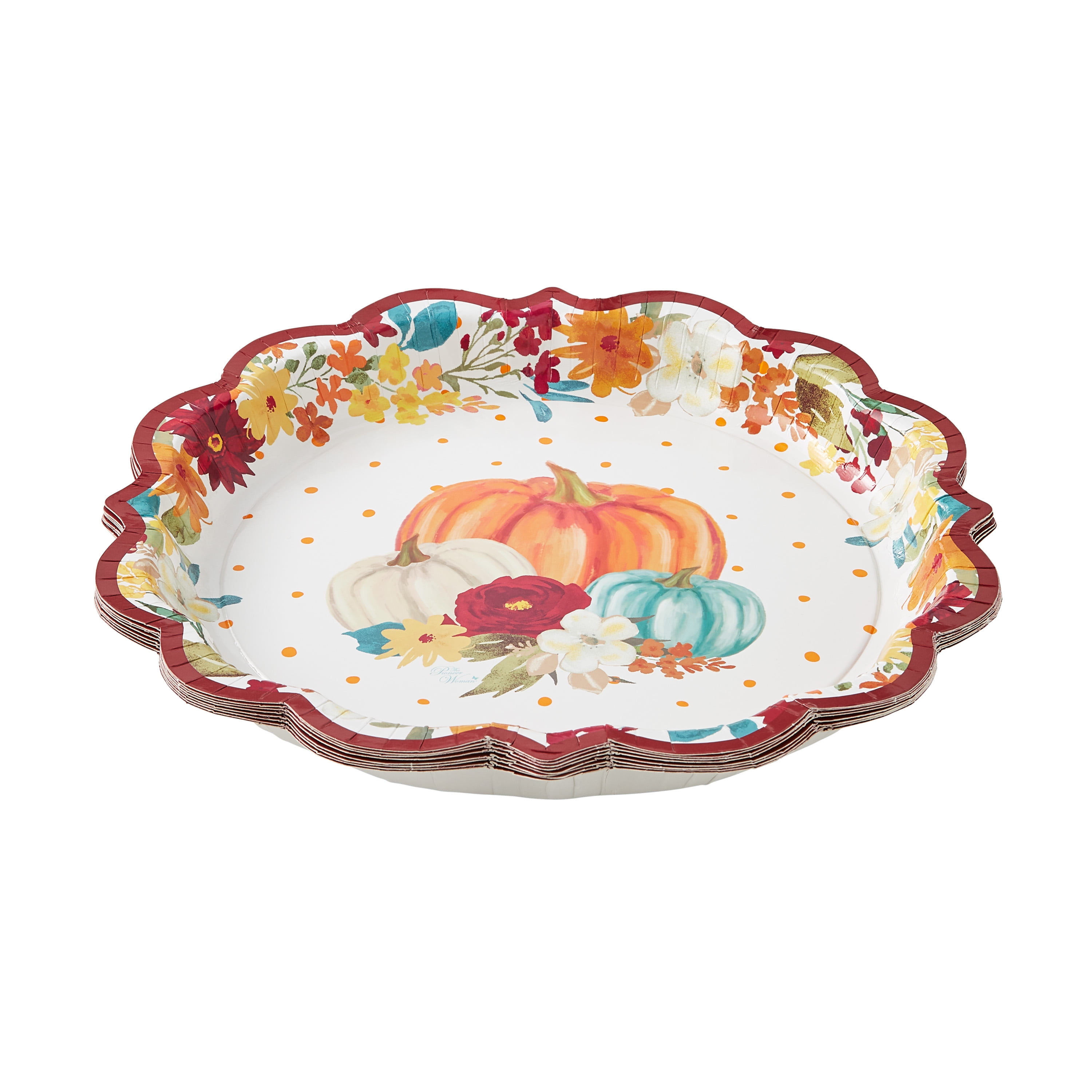 The Pioneer Woman Pumpkin Dot Disposable Dinner Plates, 11.5", 8 Count: