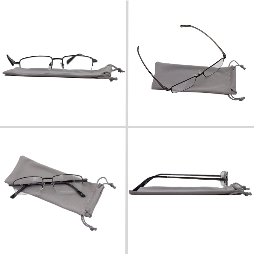 Give yourself that elegant appeal by wearing a pair of these fashionable Tuvision Readers +1.50 Reading Glasses. They feature a durable metal frame with Sure-Flex spring arms for the ultimate in comfort. These unisex reading glasses have scratch resistant lenses with a magnification that provides you with crystal clear vision to read anything. By purchasing this three-pack, you can leave a pair in the bedroom, kitchen, office or anywhere you will need to read. A handy microfiber bag is also included with these lightweight reading glasses for storing them when not in use.