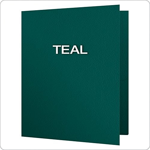 Twin-Pocket Folder, Embossed Leather Grain Paper, Teal, 25/box
