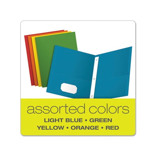 Report portfolios let you keep loose papers with fastened report. Leatherette-grained stock for a rich feel. Business card slot on inside front pocket. Front Cover Colors: Assorted Color Family: Multicolor Back Cover Colors: Assorted Sheet Size: 11 x 8 1/2. Green : Paper contains 10% post-consumer recycled fiber, 10% total recycled fiber.
