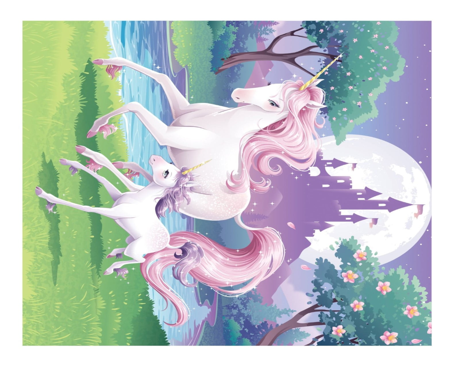 Unicorn and Castle with Colt Edible Icing Image for 1/4 sheet cake