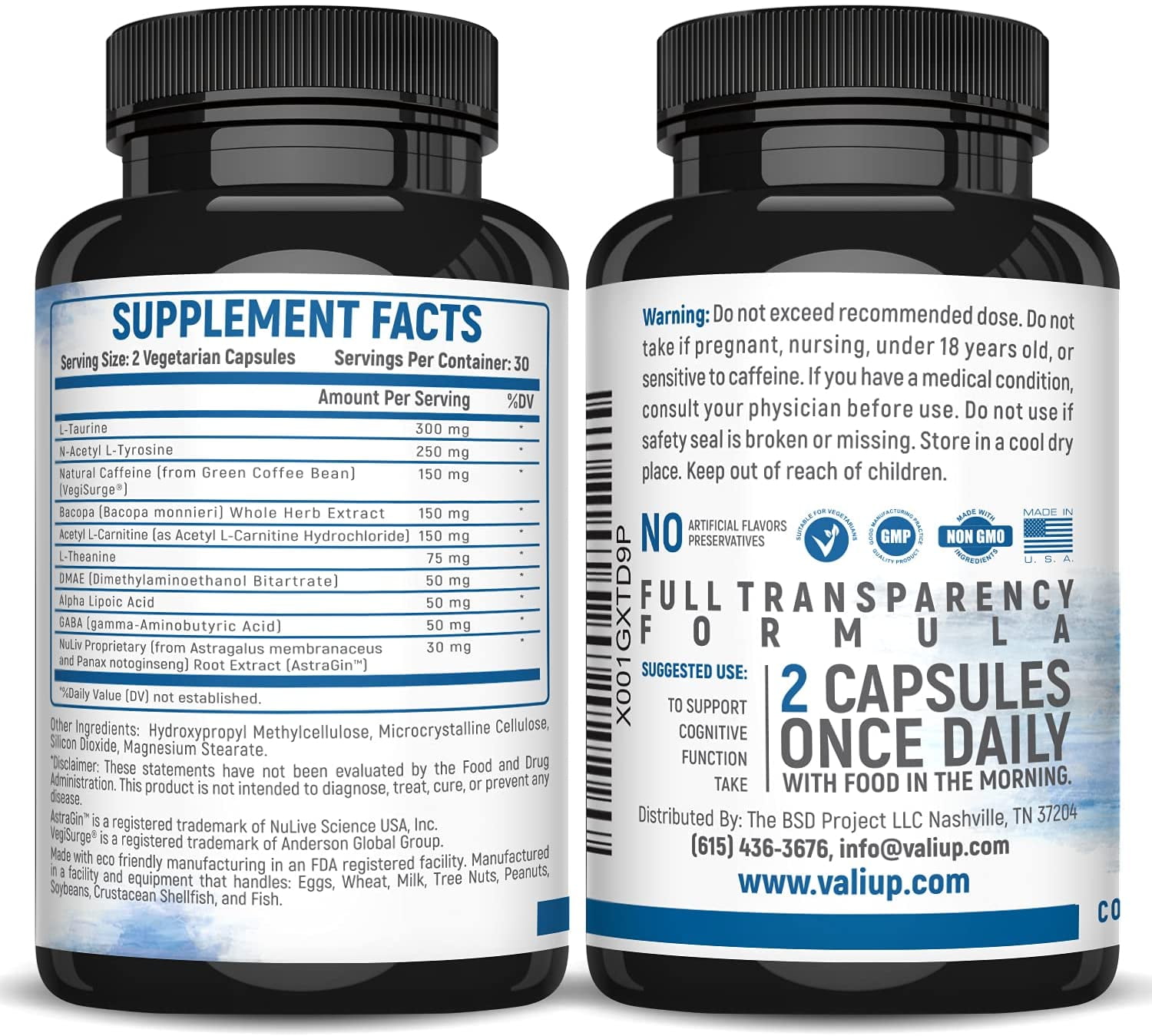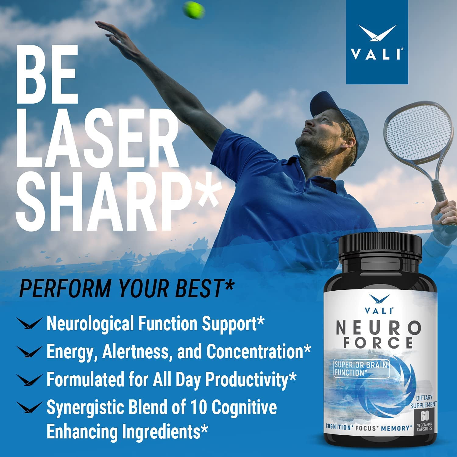 VALI Neuro Force Cognitive Function Nootropic Supplement, 60 Veggie Capsules