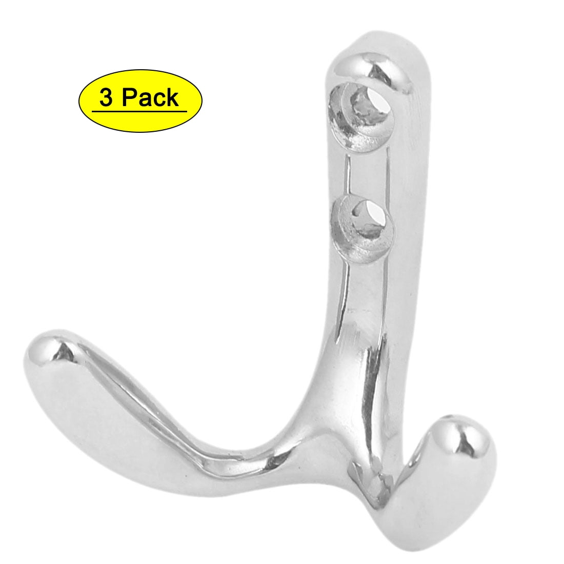 Wardrobe Wall Door Clothes Coat Hat Metal Double Hook Hanger Silver Tone