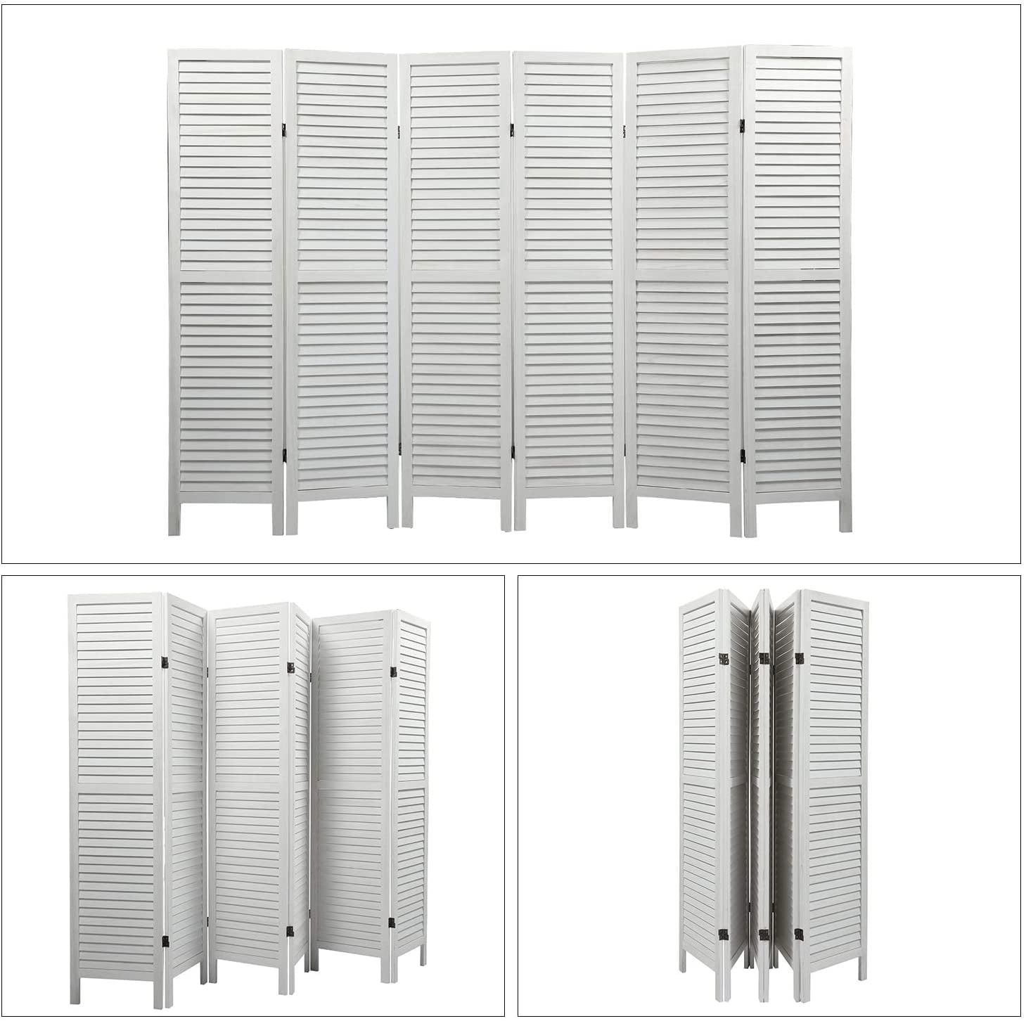 [Selected Healthy Material]: The panels of this folding screen are crafted with premium solid sycamore wood which features great resistance to acid or alkaline, moisture or decay, damage by insects or wearing during daily use. [Classic Louver Styling]: Consisting of 6 panels of louver styling, this type of folding screen follows the flavor of classical domestic outfit while integrating with the concept of modern home decoration, simple, fashionable and beautiful. [Practical Household Supplies]: This folding screen can effectively block the straightforward view from outside, perfectly protecting your privacy and making your house filled with more sense of construction. [Multifunctional Wood Slats]: The slanted wood slats which are regularly fixed to the wood frame in a row with proper gaps can block most direct light while allowing little part to go through and ensuring good ventilation. [Dual-way Smooth Hinges]: With the built in dual-way electroplated metal hinges, this folding screen can be easily adjusted to form different shapes, perfectly fitting in with the layout of the room and the demand of convenient storage by flat folding.- Great resistance to acid or alkaline, moisture or decay