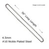 #10 NICKEL Plate METAL BEAD CHAIN for CLUTCH ROLLER WINDOW SHADES – 36′ Loop