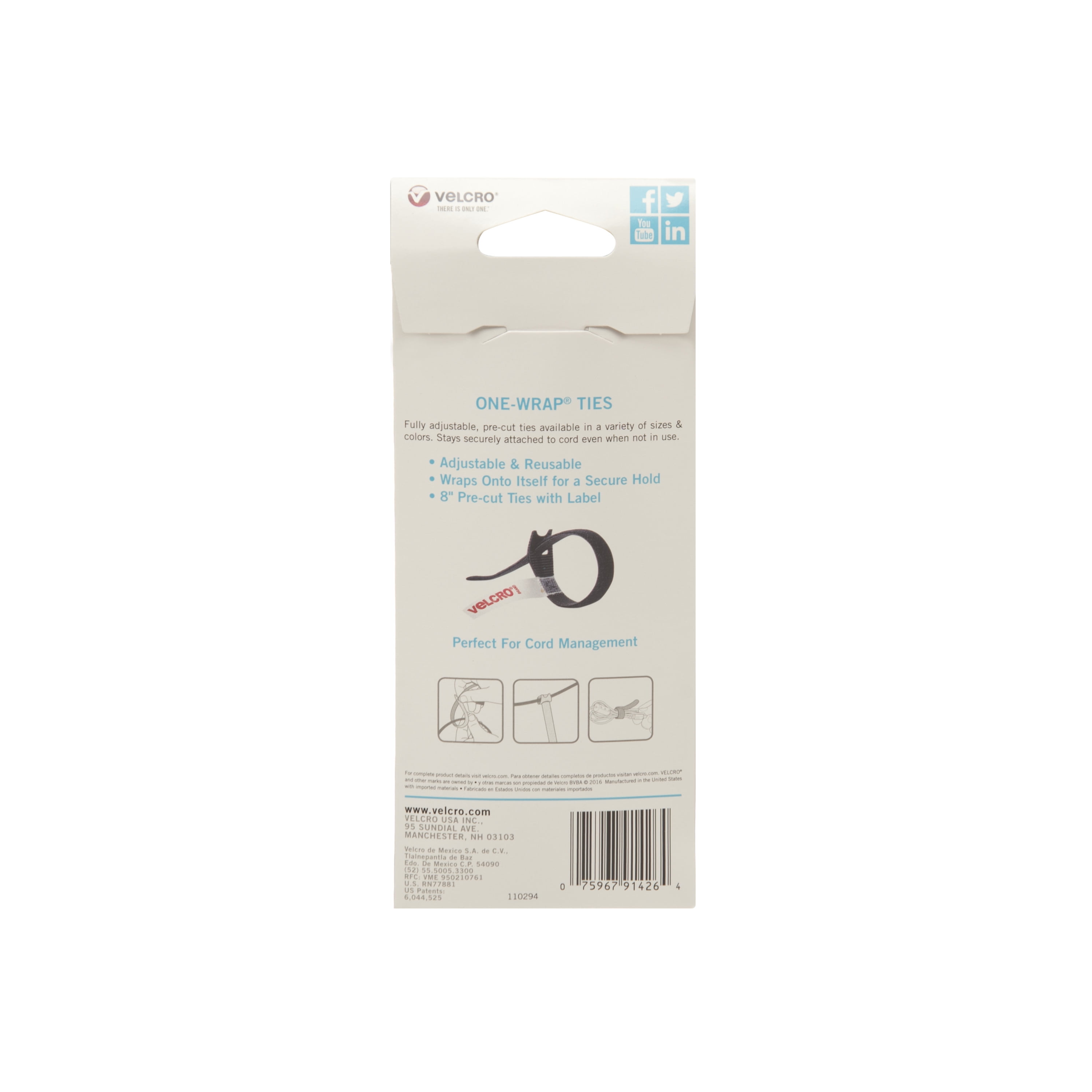 VELCRO Brand ONE-WRAP Cable Ties | Black Cord Organization Straps | Thin Pre-Cut Design | Wire Management for Organizing Home, Office and Data Centers, 8in x 1/2in Ties Black 5 ct
