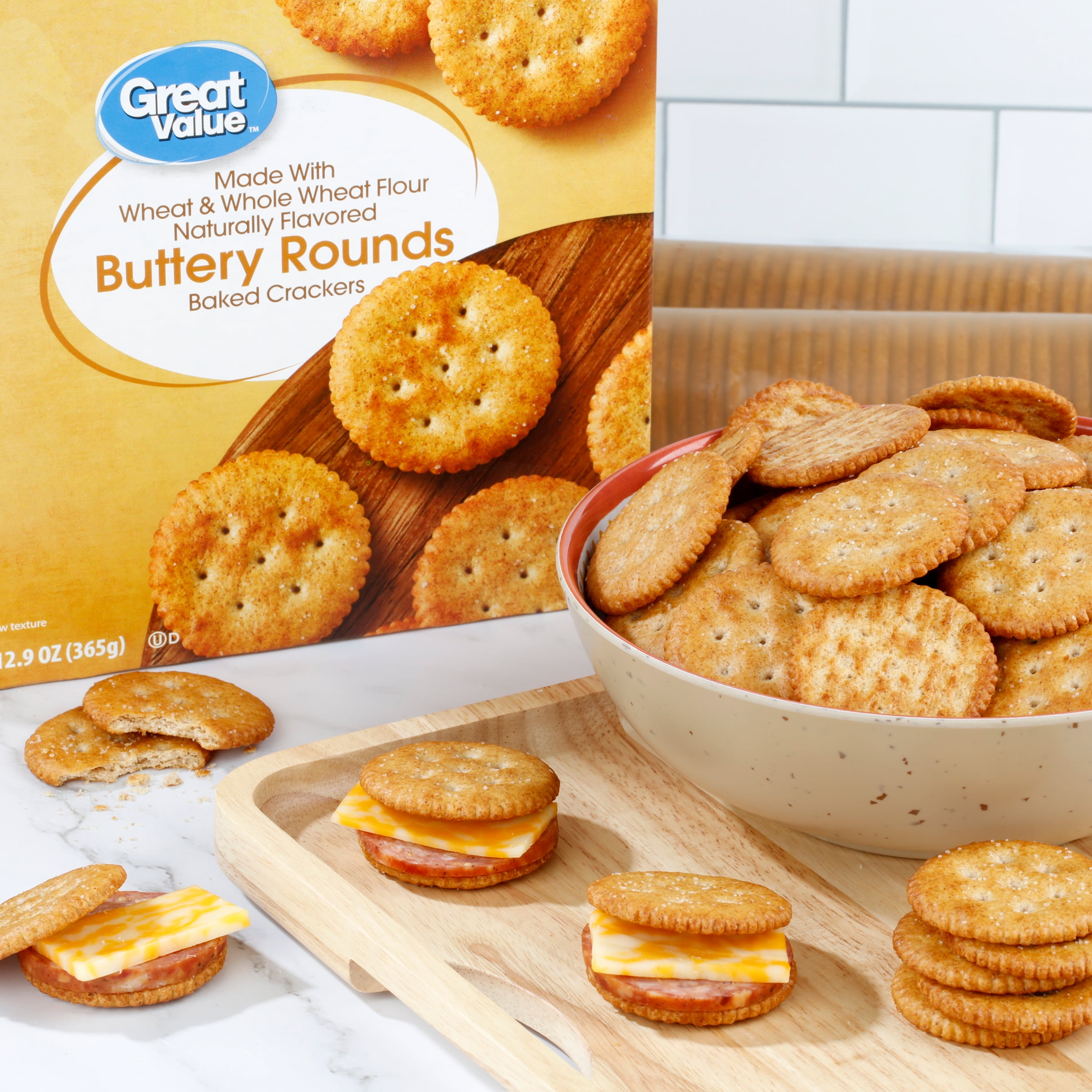 Great Value Whole Wheat Buttery Rounds Baked Crackers, 12.9 oz
