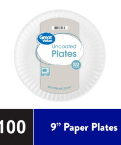 Great Value Uncoated Disposable Paper Plates, 9′, 100 Count