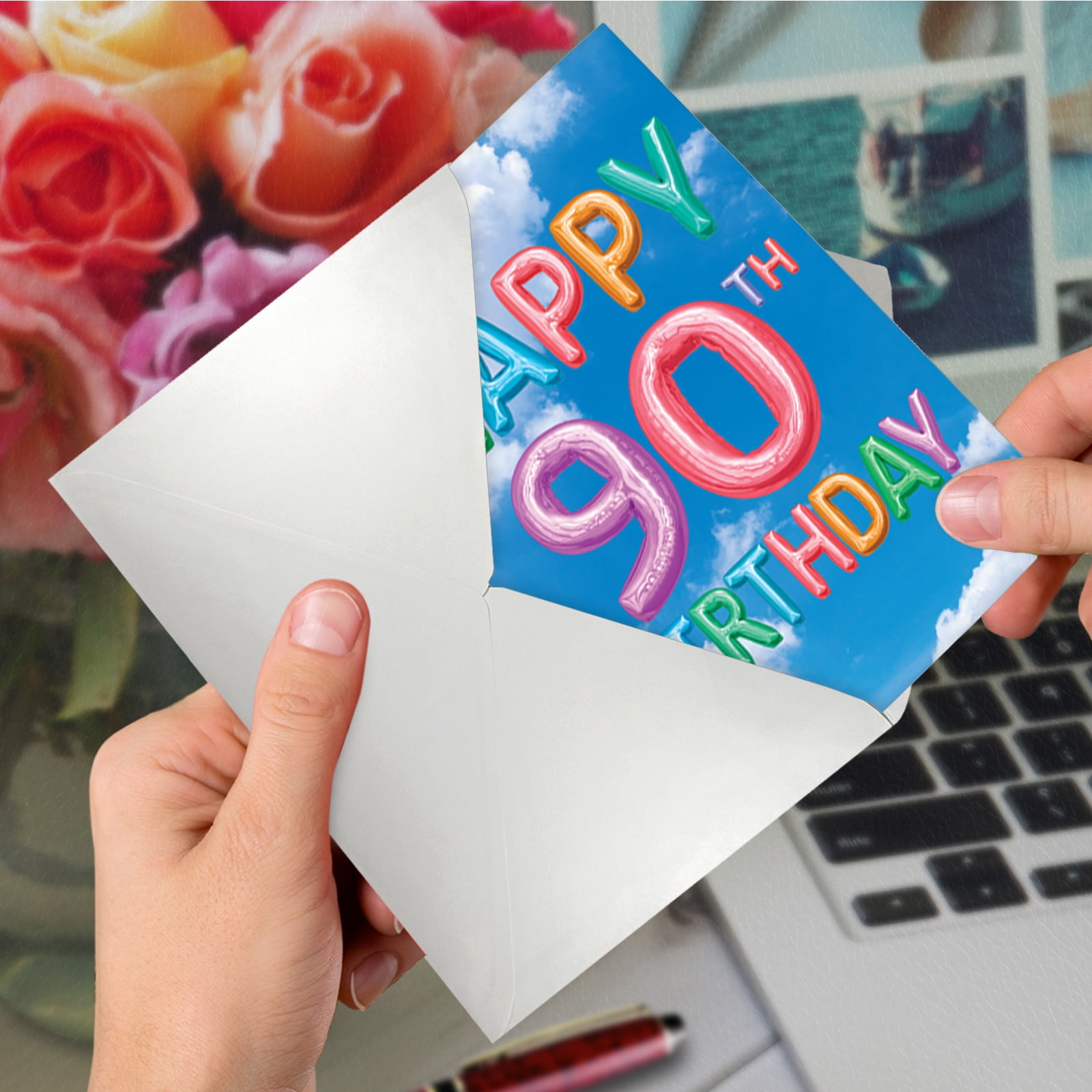 Our good as gold cards are printed on thick, snow white cardstock. All of our notecard sets are made of recycled material (not papyrus, naturally). Our print on demand technology further reduces paper waste and environmental impact. With THOUSANDS of designs and occasions to choose from, you’re sure to find the perfect card for every occasion!The high gloss cover photo pops with quality and color, while the inside is matte, creating a smooth writing surface for your heartfelt, joyful all-occasion notes. This year, reach friends, family, and coworkers living near or far, as every greeting card ships with a mailing envelope.Bulk notecard assortments and sets arrive in a reusable box. All boxed notecard sets are easily stored in a work office desk, ready to customize for your next life occasion. This year, leave a big impression on your recipient, no matter the occasion.NobleWorks, and The Best Card Company, have beautiful designs and funny greetings waiting for you!ORDER NOW!1 90th Birthday Card with Envelope – Milestone (Not 3D or Layered) C5651GMBG
