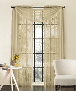 2 Panel Chevron Ivory Design Voile Sheer Window Curtain 8 Silver Grommets 55′ W X 63′