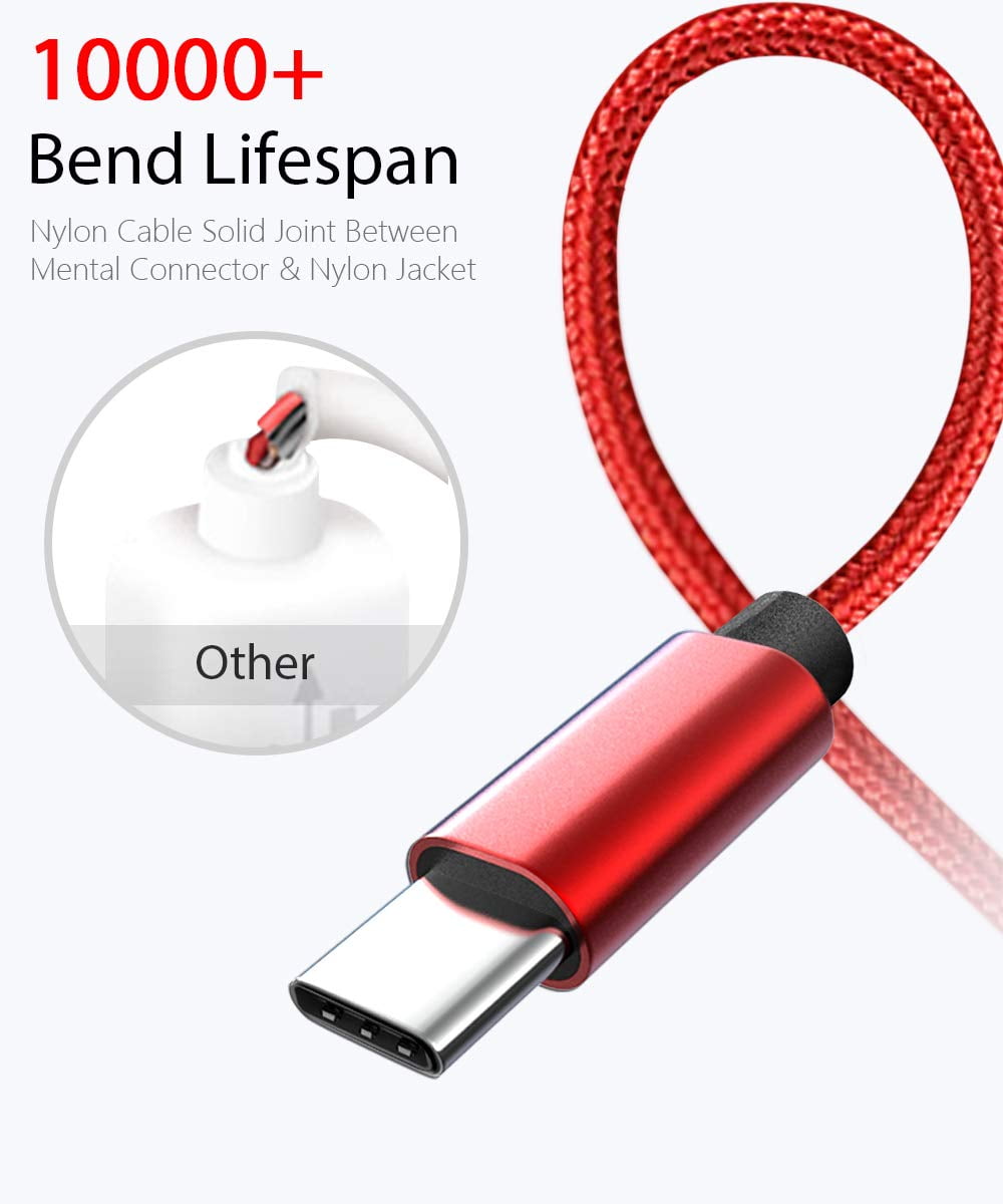 - Enhanced Durability: Strong fiber, the most flexible, powerful and durable material, makes tensile force increased by 200%. Can bear 10000+ bending test. Premium Aluminum housing makes the cable more durable, nylon braided type c cable adds additional durability and tangle-free.